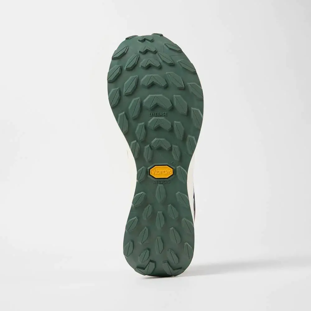 Подметка изготовлена из очень популярного сейчас Vibram Megagrip с технологией Traction lugs — это микровыступы вокруг основных выступов протектора. Так как кроссовки универсальной направленности, они на достаточном уровне работают на разных типах покрытий, кроме грязи, мокрых камней и рыхлого грунта.