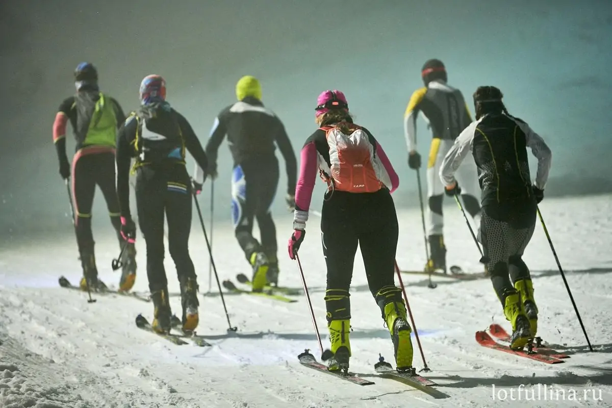 Чемпионат стартовал вечером 24го марта с вертикальной гонки. К моему удивлению, на европейских любительских соревнованиях начало вертикалок после захода солнца является очень распространенным. Это позволяет собрать больше участников, выходящих на старт после работы, да и зрелищность мероприятия, безусловно, повышается. Потрясающие впечатление, когда смотришь вслед толпе спортсменов, оставляющих за собой зигзагообразный светящийся след на погруженных во мрак трассах. Не знаю, вдохновлялись ли организаторы соревнований зарубежным опытом, но гонка вышла запоминающейся. Параметры дистанции не позволяли расслабиться ни на секунду: больше 500 метров набора на 2 километра линейной длины, уклон местами достигал 30%. Да и спортсмены держали всех в напряжении чуть больше 20 минут (а именно столько потребовалось самому быстрому ски-альпинисту РФ, чтобы преодолеть дистанцию), выдав «валидольную» концовку в борьбе за второе место - Садовин Иван, представляющий КБР, сумел обогнать Черноусова Алексея из Новосибирской области буквально на последних метрах трассы.