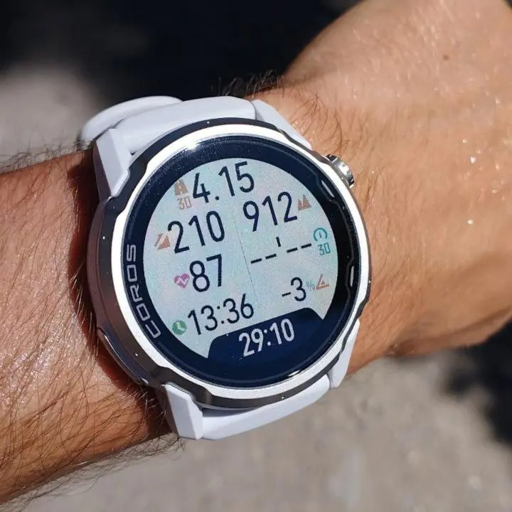 2. До 8 параметров на одном дисплее. Это то, чего я очень хотел при обновлении часов. Я привык к настроенному экрану на 7 параметров, здесь дополнился ещё один, скажу какой чуть позже. В любом случае настраиваться нужно в приложении. Из коробки в режиме, например, Трейлраннинг там много дисплеев для прокрутки, на каждом по 3-4. Это мне совсем неудобно, не люблю дисплей менять во время гонок и соревнования. Все что нужно, должно быть на одном дисплее. Это кстати причина, почему я отказался от Vertical solar. Прокрутка экрана осуществляется колесиком вниз, а доступ к навигации по карте "из коробки" смахиванием тачскрина влево.