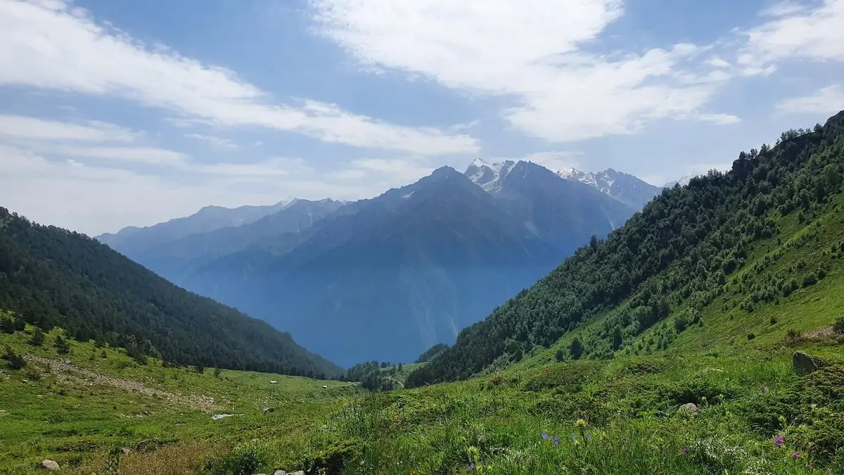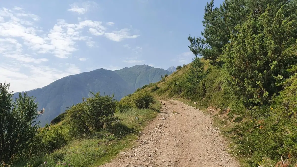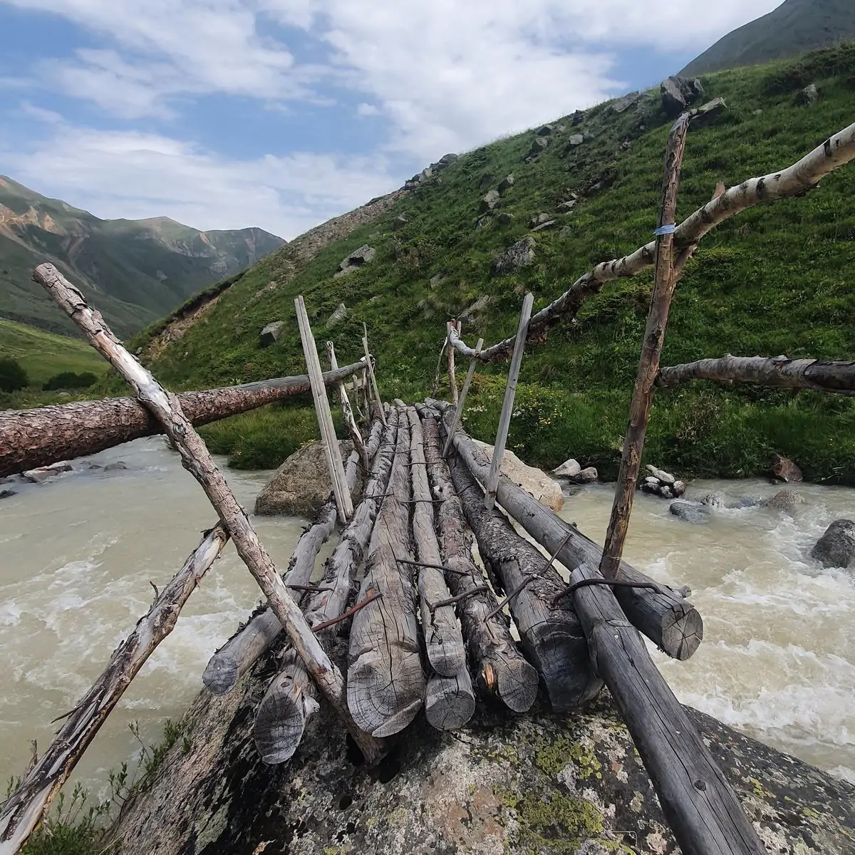 После перехода через мост трасса выходит на дорогу, по которой через 1 км вас будет ждать пункт питания и промежуточная отметка — это примерно 17й километр от старта, высота 2400 м. Кроме прохождения отметки на ПП, важно уйти на свою трассу. Syltran 33 уходит по дороге направо вниз, Suarykaush 44 и Chatkara 60 – без дорог и троп, по разметке налево вверх.