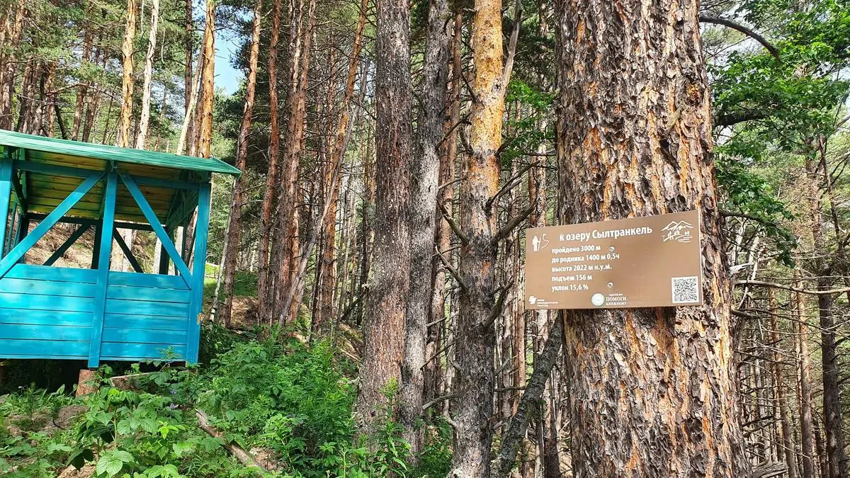 Здорово, что маршрут оборудован указателями! Встречаются беседки, а также таблички, отмечающие пройденное расстояние и остаток пути до озера Сылтранкёль.