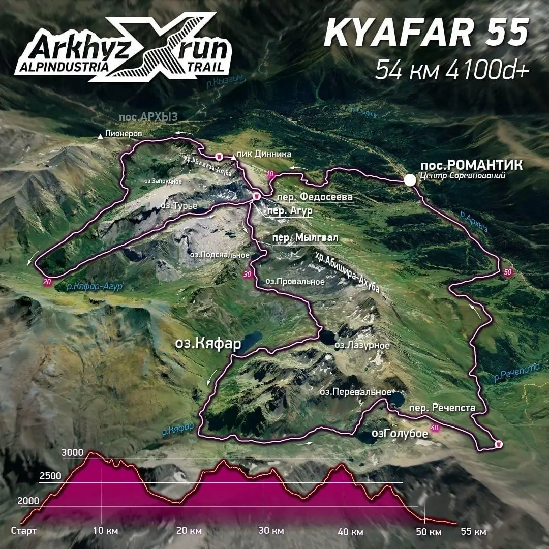 У этой дистанции никаких прелюдий и разгонных петель. Со старта 1500 метров набора на перевал Федосеева. И дальше все как мы любим: тяжело и очень красиво! Техничный траверс хребта Абишира-Ахуба, 4 категорийных перевала, травянистые склоны, курумы, снежники на подъеме, на спусках и на траверсах, и, конечно, то, ради чего надо ехать в Архыз — горные озера: Запрудное, Турье, Подскальное, Перевальное, Лазурное, Голубое, Кяфар и еще с десяток небольших безымянных. В честь Кяфара, как самого крупного горного озера в Карачаево-Черкесии, и названа эта дистанция. Наверняка, к 40-му километру у вас уже совсем закружится голова от сочетания гор и воды, поэтому после перевала Речепста трек спускается в широкую долину реки Архыз и ведет на финиш - как раз к церемонии закрытия соревнований!