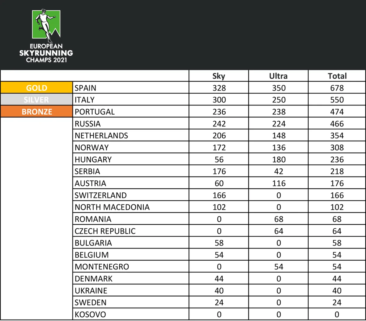 Подводя общие итоги можно сказать, что наша сборная выступила очень хорошо, хотя если бы смог добраться Юрий Штанков, то вероятно можно было бы расчитывать и на высокие места среди мужчин на Ультре и еще более высокое место в национальном рейтинге. На этот раз Россия заняла 4 место следом за Испанией, Италией и Португалией, что очень здорово, но, потенциал у нашей сборной еще конечно же есть! Стоит отметить, что в этот раз, не смотря на многие ограничения и трудности России удалось собрать хорошую и почти полную команду для такого выступления, что очень радует и воодушевляет.