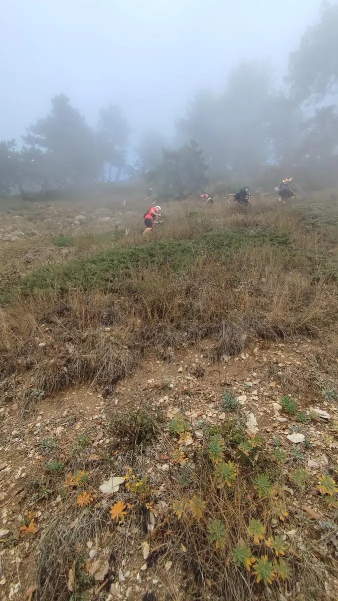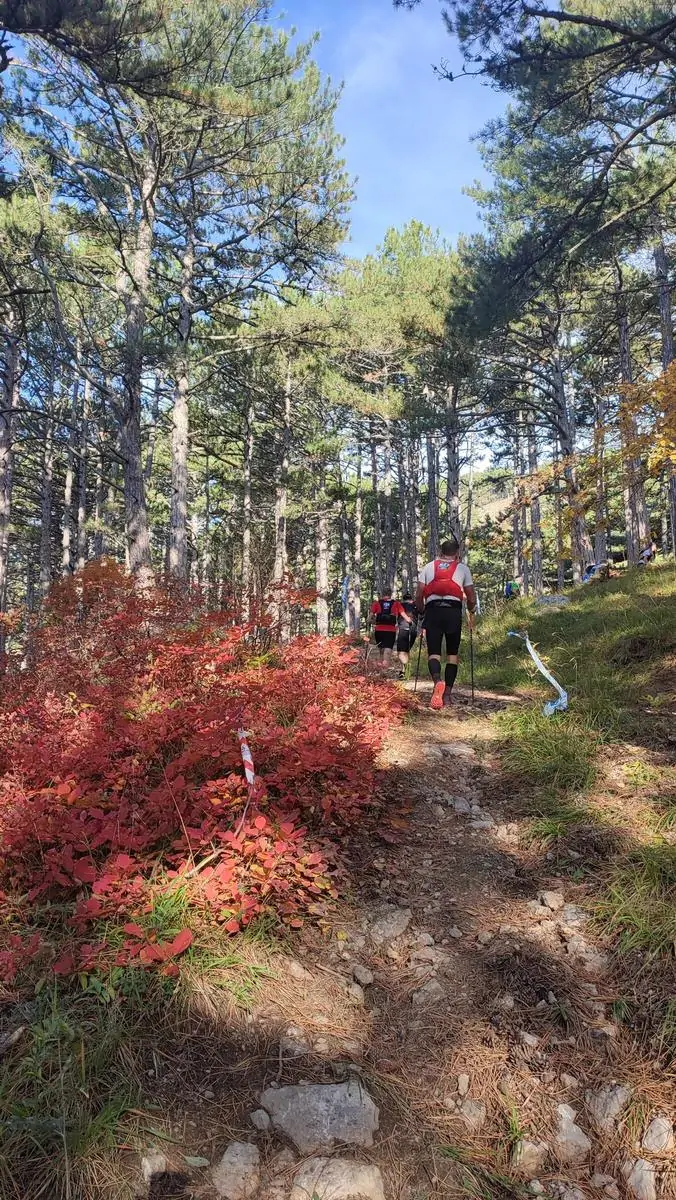 Ну побежали. Да, первые километров 4-5 было очень плотно, сложно, узкие тропы, пешком, нос в нос. Потом начали растягиваться. Высота набиралась прекрасно, быстро и легко! За первый час набрал метров 700 и это практически всегда на бегу. Сходу достал палки. Палки это... это мое все!!!