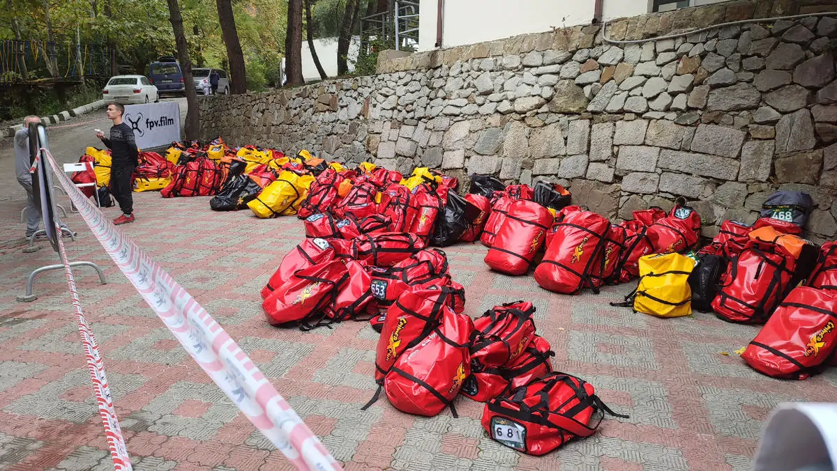 В стартовом три номера. На грудь. На рюкзак и на твой баул, плюс чип. Баул это отдельный рассказ. Он нужен для транспортировки твоих вещей на финиш. Я не раздумывая взял 100-литровый. Чтобы уже наверняка.
