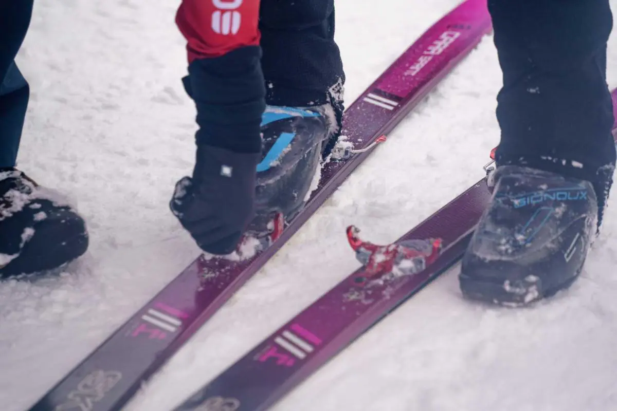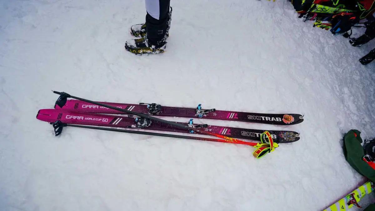 Самая главная особенность — это, конечно, лыжи. Они очень легкие, узкие и минималистичные, вес лыжи с креплением составляет порядка 900 грамм. Для сравнения, горные лыжи весят примерно в 4-5 раз больше, а лыжи для фрирайда шире в 1,5-2 раза. Палки используются такие же, как и для беговых лыж — карбоновые, жесткие и легкие.