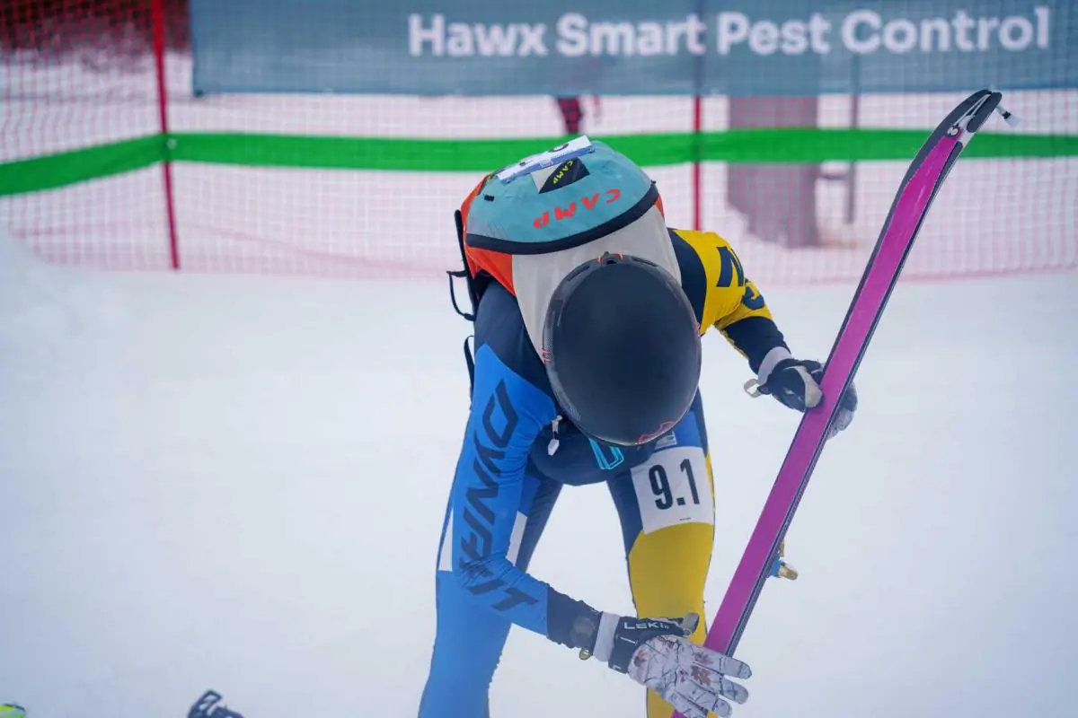 Но, пожалуй, самым важным элементом экипировки являются ботинки. У гонщиков они сделаны из карбона, чтобы быть максимально легкими и жесткими. По правилам, вес ботинка не может быть меньше 450 г для женщин и 500 г для мужчин, при этом цена такого ботинка составляет 1.500-2.000 евро. Во время подъема голенище открыто, что позволяет относительно свободно сгибать и разгибать ногу в голеностопе, а на спуск оно жестко блокируется специальной защелкой. Конечно, есть более дешевые модели, но они будут как минимум в два раза проигрывать по весу, а также по диапазону свободного хода голенища.