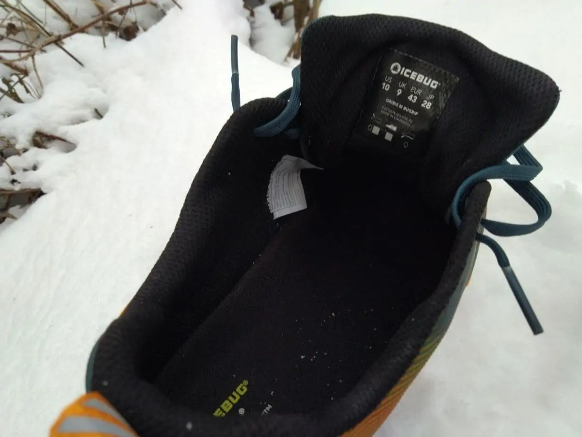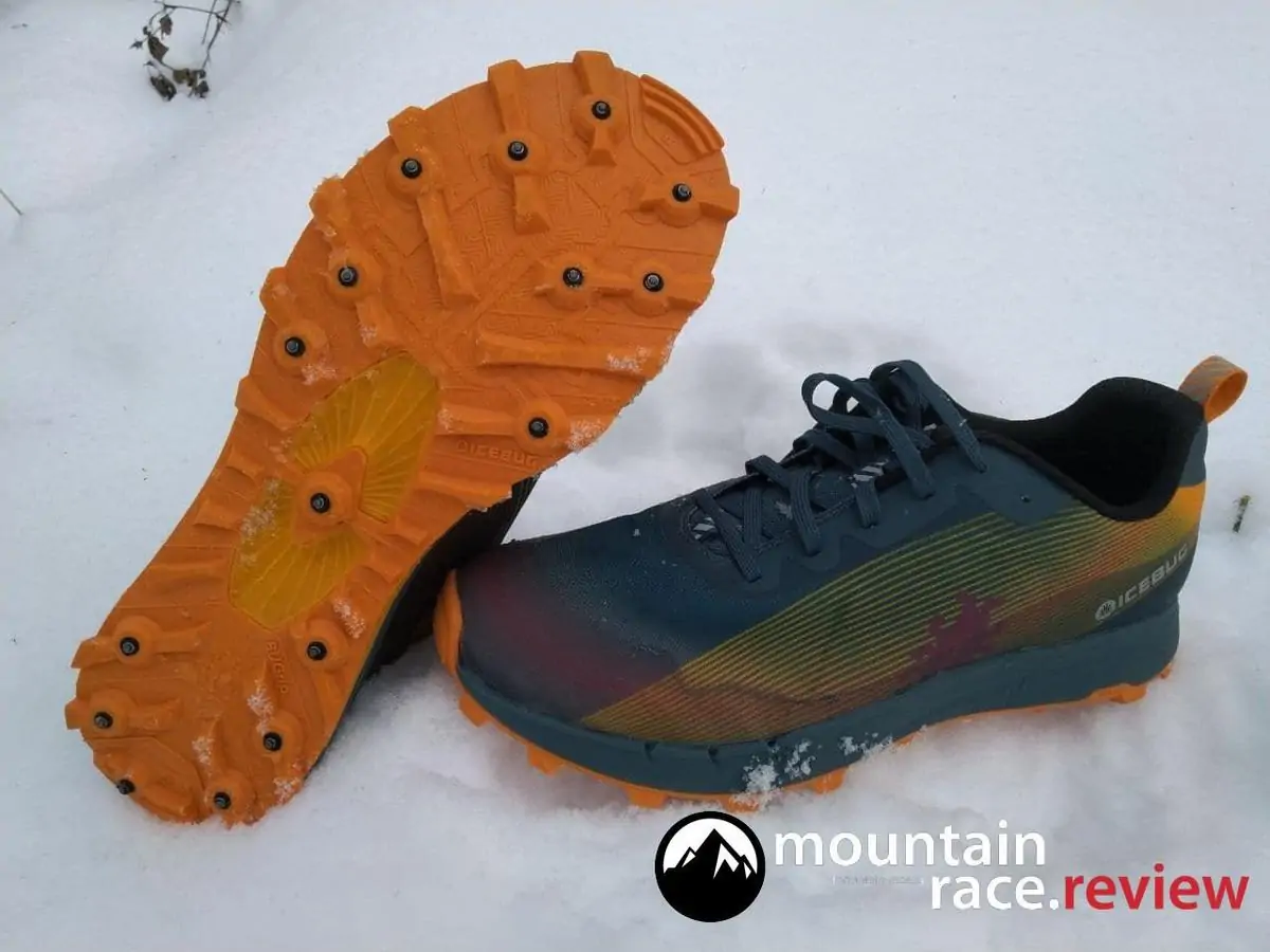 Резина, обладая хорошей “липучестью”, тем не менее не вызывает сомнений в своей износостойкости. Шипы крепко посажены на подошву, но по утверждениям Icebug потеря даже 3-4 шипов не должно сильно сказаться на производительности кроссовок.