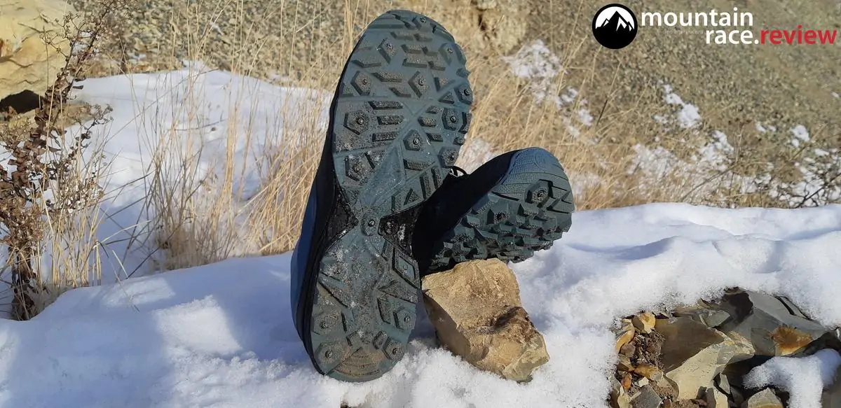Шведская компания Icebug с 2001 года производит обувь для активного отдыха и занятий спортом на природе. С самого начала основной концепцией фирмы стало изготовление обуви, которая обеспечит надежную устойчивость и предотвратит скольжение. Для этих целей была разработана фирменная технология BUGrip® - подошва с динамическими стальными шипами. Уникальность технологии в том, что стальные шипы не только цепко впиваются в лед и дерево, но и амортизируются в подошву при беге по асфальту или другим твердым поверхностям. Это сочетание рождает актуальную для бега зимой и в сложных скользких условиях линейку трейловых кроссовок. Сегодня речь пойдет о модели Pytho5. Icebug Pytho5 BUGrip® - это динамичные цепкие кроссовки для бега в осенне-зимних условиях по обледенелым и другим скользким поверхностям. Высокая торсионная жесткость, достигнутая вставкой на подошве элемента из плотного полимера, и 17 динамических шипов из твердосплавной стали обеспечивают отличный контроль при контакте с обледенелыми поверхностями, мокрой древесиной и травой. Проникающая способность шипов дает возможность "зарубиться" в лед, а в сочетании с агрессивным разнонаправленным протектором увеличивается шанс зацепиться за более однородный сухой слой, который находится под внешним слоем мокрых корней и стволов поваленных деревьев. Pytho5 обладают большой площадью защищенных накладками из TPU участков - особенно в носке, на пятке и на внутренней стороне, то есть в местах наиболее вероятного контакта с незапланированными препятствиями. Эта модель не имеет ярко выраженной поддержки стопы, кроме участков из усиления TPU, что говорит об агрессивном характере этих кроссовок. Также в пользу использования для интенсивного бега говорит отсутствие в этой модели мембраны - верх кроссовок выполнен из сертифицированного Bluesign® текстиля RipStop, который довольной плотный для того, чтобы нога не продувалась, как в летних кроссовках, но в то же время легкий и не впитывающий воду, а после преодоления брода активно выпускающий воду наружу. Использование этой модели для бега на длинные дистанции, в том числе ультры, потребует четкого понимания того, насколько интенсивно вы будете двигаться, чтобы не переохладиться. Эта модель не для тропежки в глубоких снегах. Правда, о глубоких снегах нынче во многих регионах остается только мечтать.