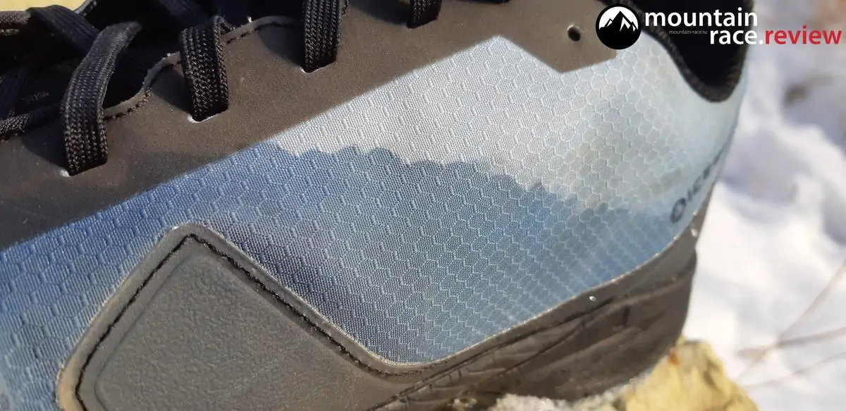 Выполнена из сертифицированного Bluesign® текстиля RipStop из 100% переработанного ПЭТ, сертифицированного GRS, содержащая в носке, по бокам и на пятке элементы TPU, придающие защиту, стабилизацию и износостойкость. Сетка довольно плотная, выполненная в передней части в один слой, а в пяточной части имеющая подкладку. Важно: при беге сетка будет естественным образом сгибаться, и в зависимости от формы стопы могут появляться места активного трения. Практика показала, что после 150-200км внешний слой сетки в этих места начинает мохриться, что рано или поздно приведет к истиранию. Увы, чудо не произойдет :) |