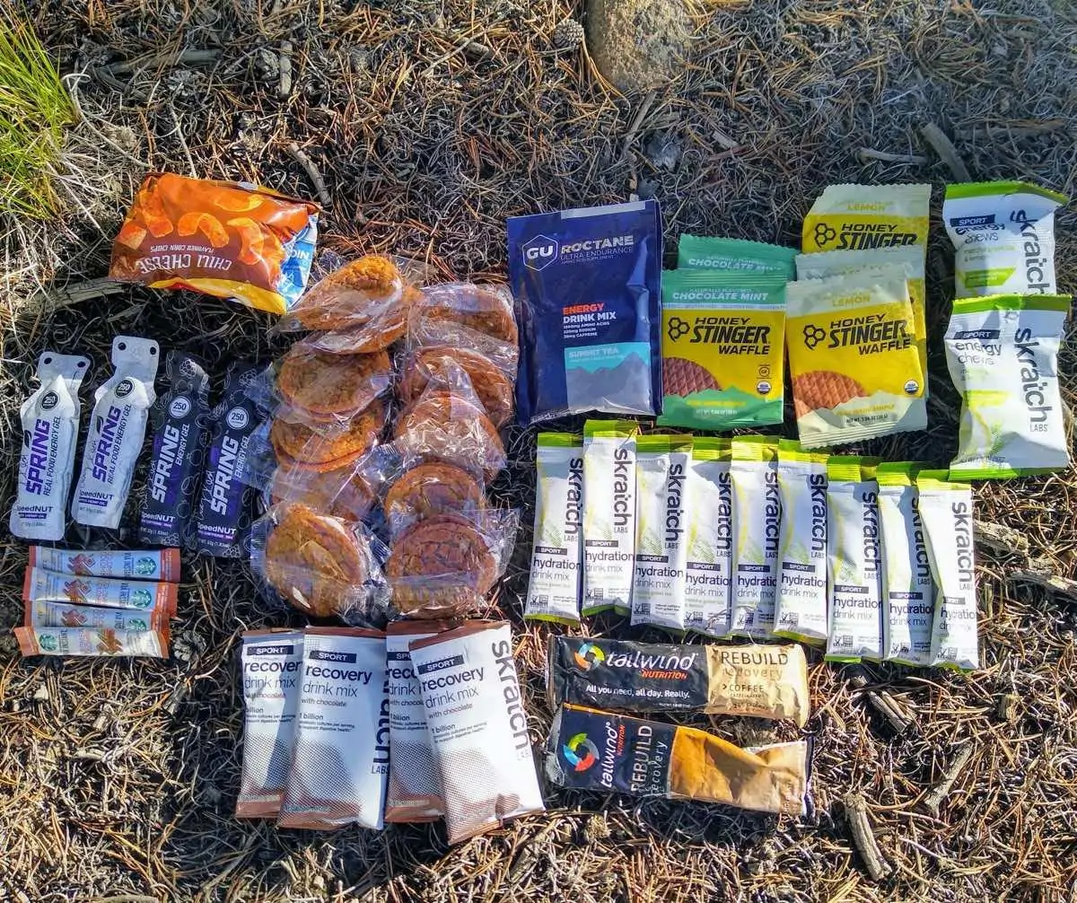- У меня было много еды фирмы Skratch, и ещё немного Skratch для восстановления. Еще было немного Tailwind для восстановления, но я им не воспользовалась. У меня было 12 овсяных тортиков, но съела я только 6. У меня были с собой Принглз со вкусом “барбекю”,их я съела все. Потом Fritos и немного покрытых шоколадом крендельков, всего лишь горсть. Нужно было брать полную сумку, они хорошо пошли. И у меня были пакетики с растворимым кофе из старбакса.