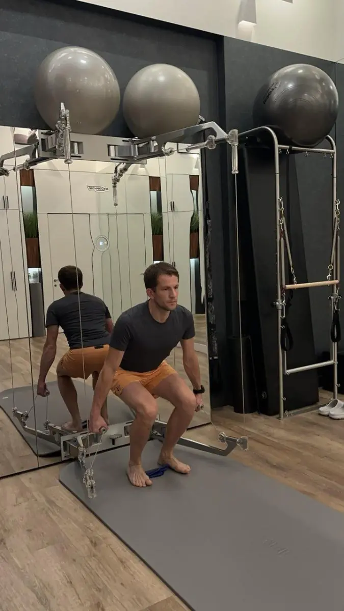 Каждый сеанс в моем случае начинался с разогрева мышц на аппарате Indiba, а затем уже переходил в основную часть с упражнениями. Indiba — физиотерапевтический аппарат, который применяют для мягкого глубокого прогрева тканей, уменьшения боли и подготовки мышц к дальнейшей реабилитационной работе. Дальше занятия строились по-разному, но с общей целью — вернуть нормальную механику движения, включить нужные мышечные группы и убрать те компенсации, из-за которых поясница продолжала получать лишнюю нагрузку. В основном упражнения приходились на кор, ягодичные мышцы, заднюю поверхность бедра и мышцы-стабилизаторы таза.