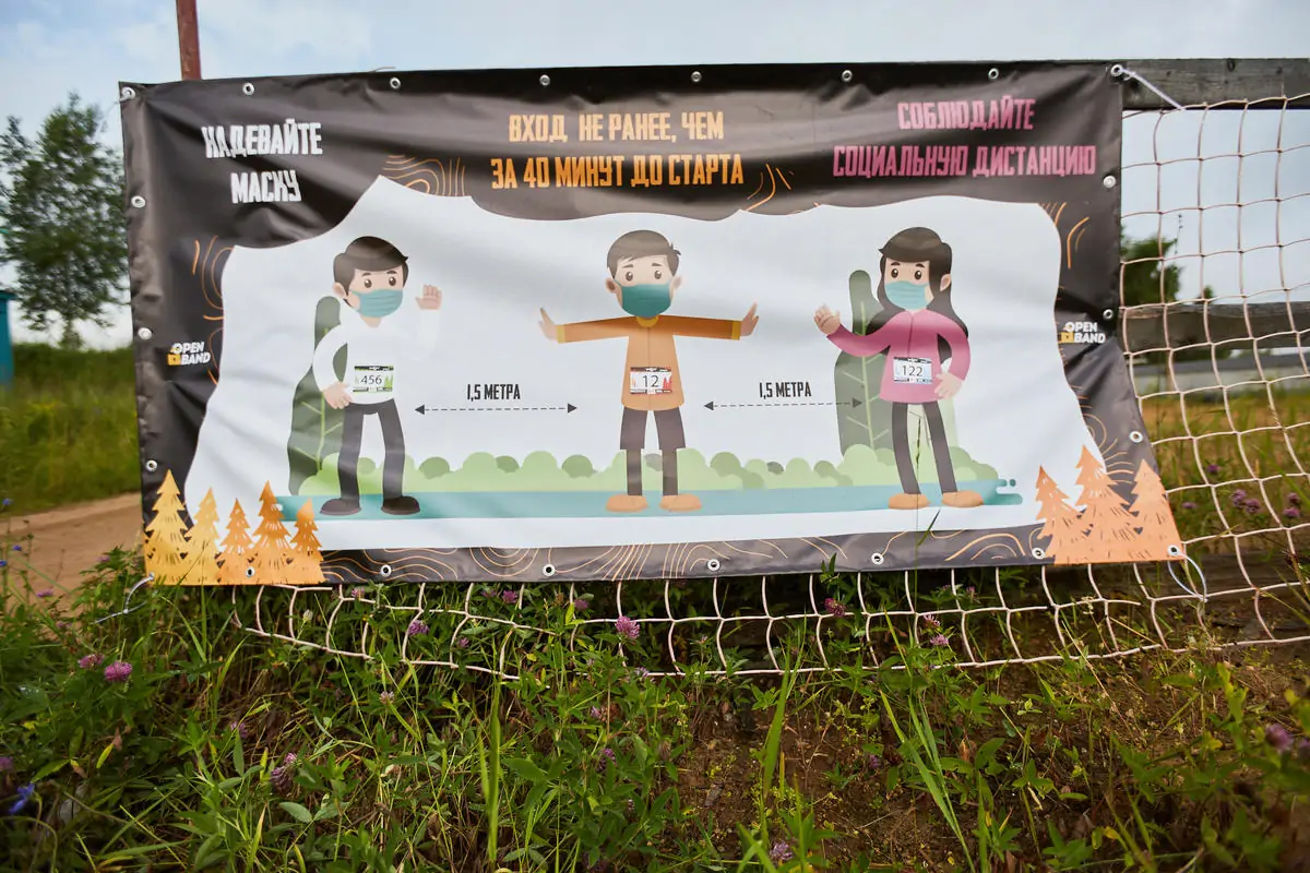 Было указано, какие меры предосторожности будут применяться на территории центра мероприятия. Проход осуществлялся только при наличии масок, которые были в составе стартового пакета. Для участников были выделены «зеленые» зоны: раздевалки, камера хранения, зона старта и финиша. Доступ в «зеленую» зону осуществлялся по браслету участника, который был вложен в стартовый пакет участника.