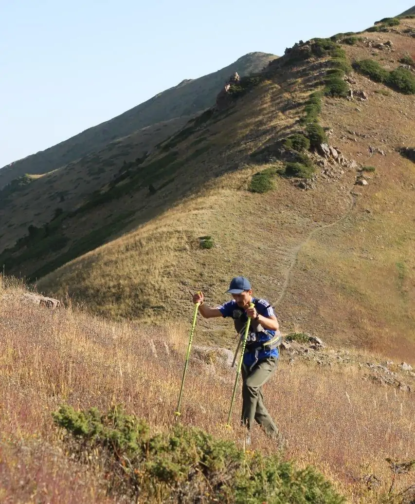 Рустам: Вообще, раньше я жил в южном Казахстане. Там степи и равнина, хлопок выращивают, я даже работал на уборке урожая. В 2007 году переехал жить в Алматы, увидел вершину Большой Алматинский Пик (3680 м) и очаровался. Но только через 10 лет взобрался на него! А после переезда сначала просто начать ходить по горам, мне понравилось. Потом встретил ребят-марафонцев из клуба, они были в теме горных забегов, и я тоже ударился в эту стихию. В 2015 году впервые поучаствовал в горном забеге. Бежал в джинсах, ещё одни штаны сверху, а вместо перчаток - носки. Дошёл почти до вершины, оставалось всего 100 вертикальных метров. Развернулся и пошёл назад, потому что уже отморозил пальцы. На всю жизнь запомнил этот забег. Решил на следующий год во что бы то ни стало добраться до конца. А в 2016 году я был уже пятым в абсолюте.