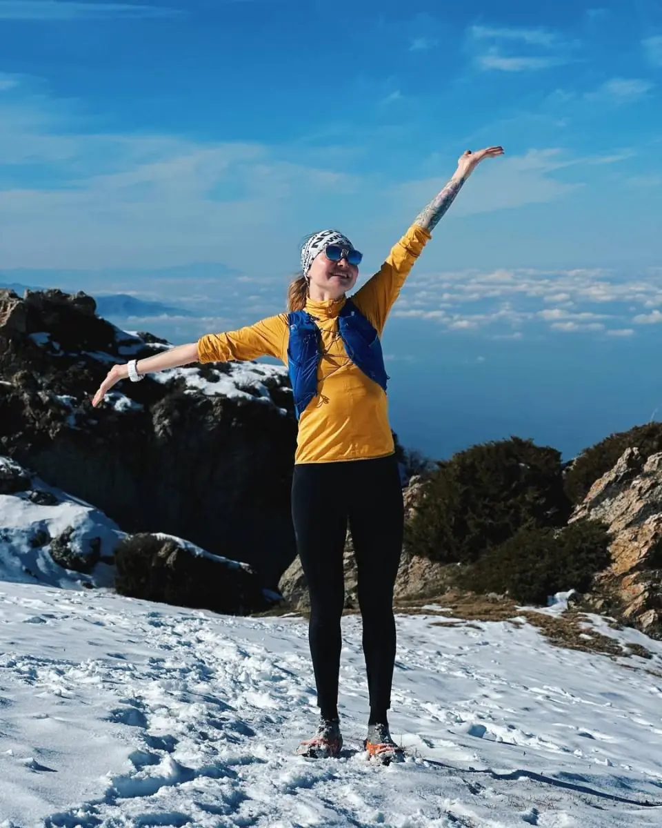 Моя тренировочная неделя стандартная включает в себя: одну силовую на пресс/спину/ягодицы, одну силовую на ноги, одну работу на стадионе плоскую, одну работу с подъемами и спусками, много лайтовых кроссов и обязательно один хайкинг, чтобы прям погулять и покушать.