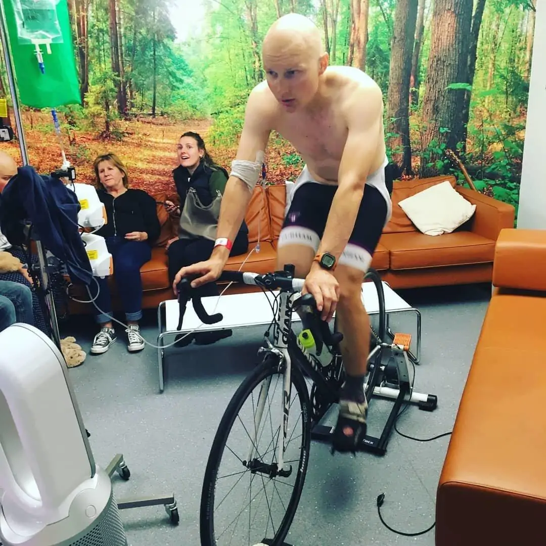 — Yes, exercise has always been a huge part of my life. I had come from a background of doing orienteering, cross-country running as a kid, then doing triathlon as a teenager and through university. I was already pretty fit, and I think that gave me a huge advantage going into treatment ‘cause I was not trying to do something new, I was just trying to sustain the fitness I had already. During my time in hospital I would go for a walk every day for an hour, I would have my bike on a turbo trainer in my hospital room. And then in times between my chemotherapy sessions I would run and cycle and that kept me in unusually good physical condition.