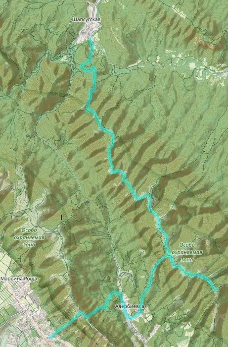 Маршрут имеет протяженность 37 км с общим набором высоты 2000 м. Хорошо подходит для длительной тренировки или однодневного спидхайкинга для опытных ходоков, которые побегут в команде! Для его организации вам потребуется заброска из города Абинск к станице Шапсугская. При планировании прохождения по этому маршруту следует учесть, что на маршруте нет источников воды.