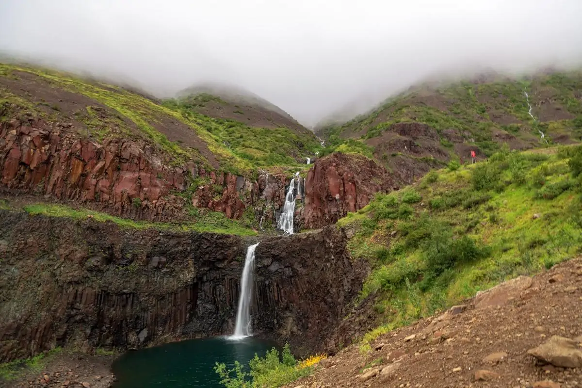На некоторых дистанциях путь будет пролегать через каньоны, прорезанные небольшой, но очень бурной речкой Талнах, с крутыми обрывистыми базальтовыми стенами. А на их краях местами еще будут свисать снежники, надутые за долгую полярную зиму. Как таковых ледников на территории нет, но есть многолетние снежники, которые местами образуют гроты, мостки и пещерки, промытые малыми ручьями. Подъем на гору Сокол проходит по крутому гребню, с которого открывается вид на Лантакойский камень (горы Норильска), на меандрирующую долину реки Валек, а с вершины можно увидеть и сами отроги основной части плато Путорана, гору Сундук, озеро Мелкое и Глубокое. Все маршруты проходят через памятник природы "Красные камни", где сливается вниз 30-метровый водопад прямо в чашу глубиной 6 метров. Стены цирка сложены базальтами и имеют характерную столбчатую отдельность, а окислы железа придают им бурый, красноватый оттенок — отсюда и появилось название этого места.