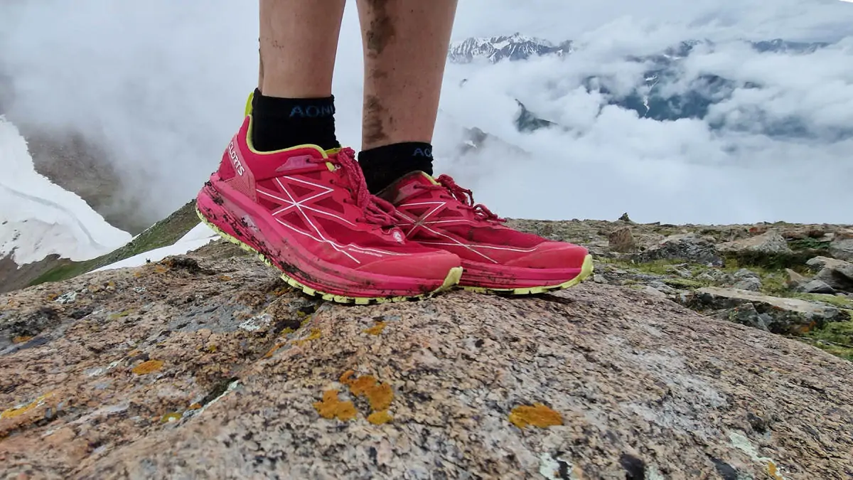 Скажу по секрету, что, хоть их основная направленность для простых трейлов мне была очевидна, я взяла их на пробежку на горный гребневой маршрут — практически скайраннинг, с перепадом от 1500 м до 3400 м. Еще и дождь пошел. На подъеме на мокрой траве и слегка влажном грунте проблем не было вообще. Мокрый курумник — точно нет, абсолютно не рекомендую, как и мокрую глину. Меня Clorts очень удивили на спуске — сначала на довольно техничном песчано-каменистом сцепления было достаточно, а потом и на асфальтовом в них было очень приятно «раскатить». Правда, на крупно-каменистых участках было ощущение нестабильности, возможно, из-за высокой и негибкой подошвы.