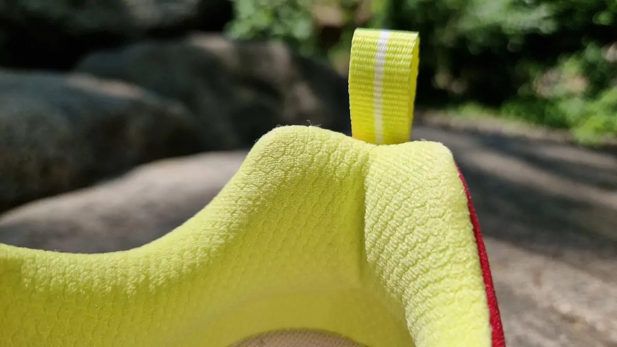 Шнурки проходят через петлю на язычке, удерживая его от соскальзывания вниз. Но сам язычок очень короткий — его едва хватает на длину шнуровки. Этот момент меня беспокоил, так как казалось, что при беге он точно уедет вниз. (Спойлер: за 4 часа бега он остался на месте, было комфортно!) Здесь также есть потенциальная дополнительная проушина, но я думаю, что если ее сделать, то шнурки уж точно окажутся выше язычка.