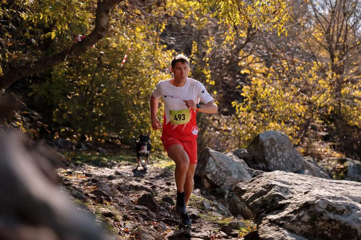 Начало дистанции достаточно беговое, с выходом на асфальт. Но его немного, и вы вскоре находитесь на техничной каменной тропе, где желтые листья переплетаются с серым цветом горной породы.