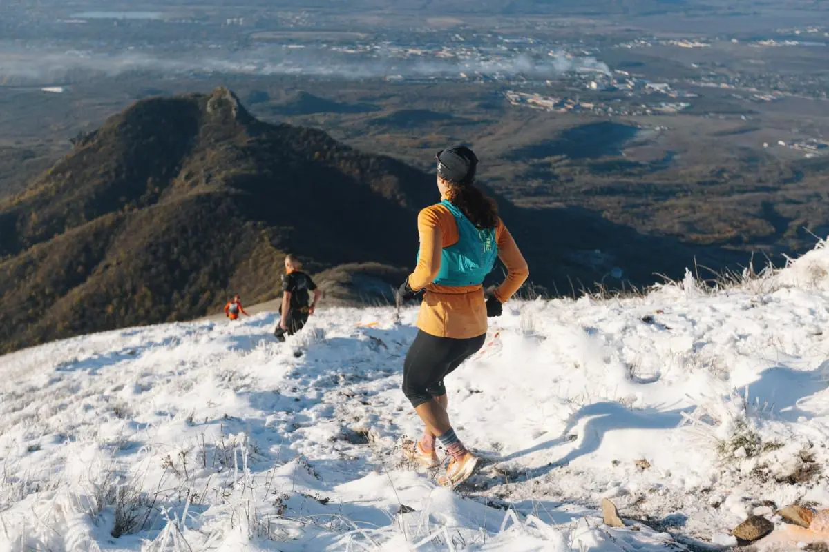 Дистанция 45 км - это тяжелый рок на фоне остальных. Здесь не будет возможности бежать по прямой и демонстрировать навыки стадионного бега, только горы и только хардкор. С самого старта начинается подъем, далее ещё три вершины друг за другом - Большой Тау, Лисий нос (два брата) и малый Тау. Угол подъема тут резкий, а ближе к вершине и руками придётся подтянуться! На спуске под ногами ждёт сыпуха, камни и корни. Учтите, что и тут резкий уклон, поэтому будьте готовы к проверке на прочность.
