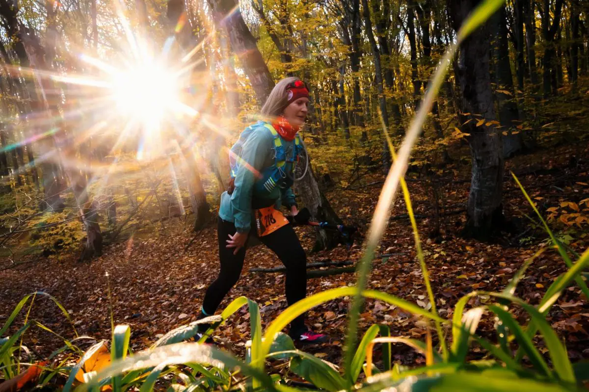 Как только вы забегаете в лес, вы оказываетесь на «ковре» из листьев, по которому бежать одно мягкое удовольствие. Первые километры пройдут по терренкурам мимо пещеры первобытного человека и будут плавно набирать высоту. Затем предстоит плавный спуск к первому пункту питания. Через некоторое время после ПП, открываются обширные виды гор, дороги становятся широкими и местами каменными. Здесь уже можно разогнаться.