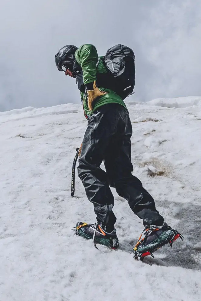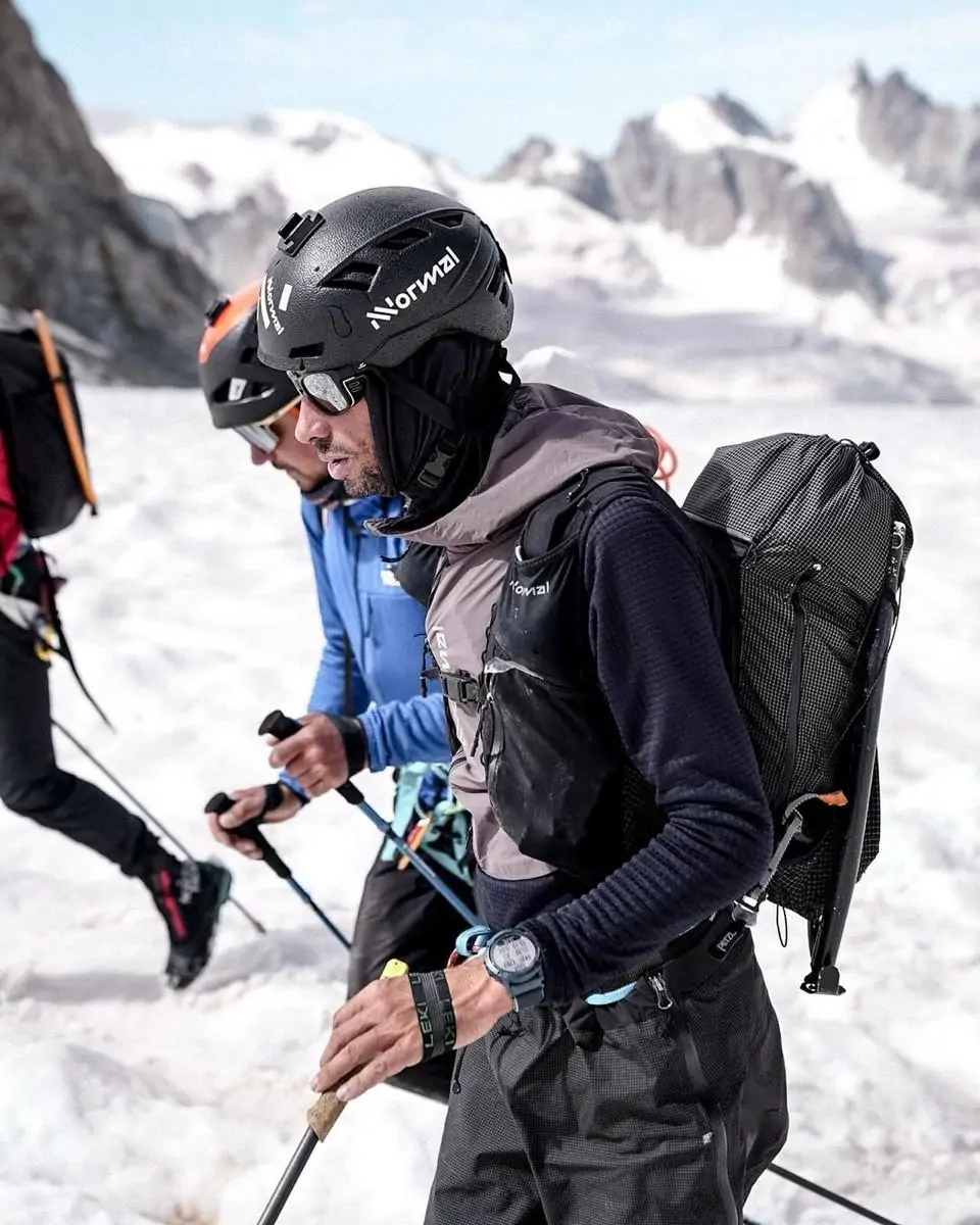 На фото выше вместе с той самой курткой мы видим мембранные брюки-самосбросы от Arcteryx. "Шта?" Вероятно, Килиан не всё сжег после ухода из Salomon*, а самое ценное-таки оставил. А может просто взял "погонять" у напарников по команде. Мембранных, тем более самосбросов, у NNormal пока что нет, но не исключено, что также появятся. Эти брюки пригодились ему во время самых техничных и "низкоинтенсивных" восхождений.