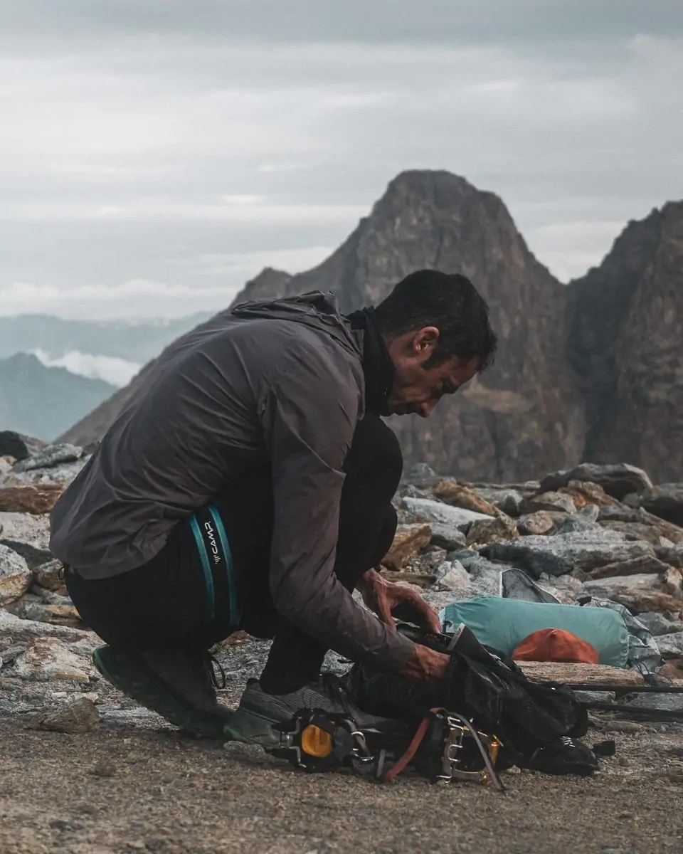 Практически все восхождения Килиан совершил в двух моделях обуви NNormal - кроссовках Tomir 2.0 и для маршрутов на высоте Tomir Waterproof с использованием мягких кошек. У нас нет информации об использовании каких-либо других альпинстских ботинок в этом проекте самим Килианом, да и это вряд ли бы пригодилось.