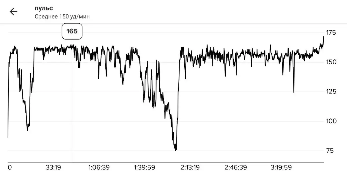 Субъеквтино, выполняя темповую работу в гору в течение получаса часы показывали очень близкие к правде показания ЧСС - 163-167уд/мин и график пульса получался весьма стабильный с редкими сбросами. Есть ощущение, что функция работает хорошо на стабильном, относительно ровном темпе. Спускаясь назад с горы с заново запущенной тренировкой, часы уже показывали странные завышенные значения. Второй тест я выполнил во время гонки 33км Elbrus Trail, где постарался реализовать форму и бежать в ровной интенсивности. ЧСС писался с запястья и получился очень ровный график и близкие к правде значения 160-165 в подъем с учетом жаркого утра, и по ощущениям было примерно также, возможно с погрешностью 3-4 удара. Там где в середине дистанции провал пульса - это я развернулся и пошел назад по тропе, потеряв темляк от палки, а затем вновь побежал вверх - датчик быстро среагировал и вернулся в график. Это сильно обнадеживает, ведь раньше гонки в горах я в основном бегал с нагрудным датчиком, что не всегда удобно, теперь буду чаще стартовать без ремня. Тем не менее, нагрудный датчик пульса по-прежнему остается наиболее точным прибором измерения ЧСС. С часами Suunto 9 Peak он синхронизируется очень быстро.
