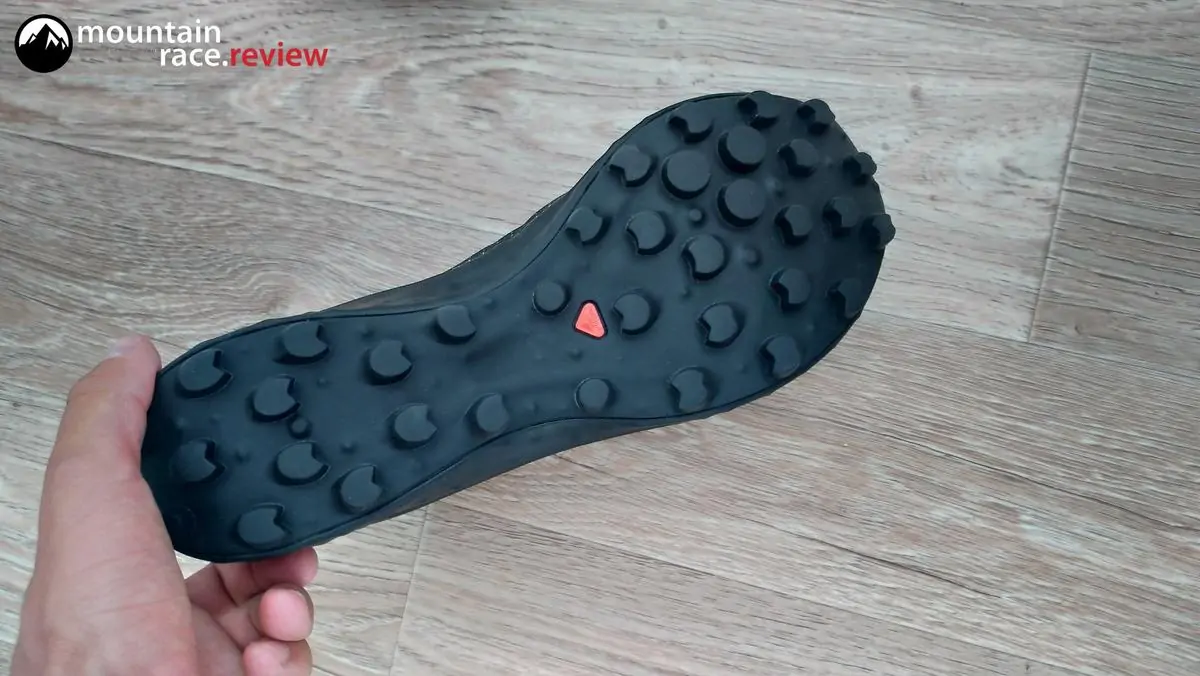 Что интересно для этой категории спортсменов - так это побочное действие этого протектора. Кроме того, что он хорошо держит сцепление на мокрых камнях, частота посадки грунтозацепов и их пятно контакта настолько велики, что у камней практически нет шанса пробиться между ними, и стопа получается в относительной безопасности на каменистых тропах. При этом в самой промежуточной подошве этой защиты нет, она очень гибкая, динамичная и низкопрофильная. Получается, закрыли двух зайцев одним решением. Плюс ко всему высокие грунтозацепы компенсируют отсутствие большой амортизации в межподошве, и когда в них бежишь, скажем, по асфальту или грунтовой дороге вниз, что совсем не их целевая стихия, получается вполне себе сносная амортизация и защита стопы - такой вот парадокс получился на ровном месте.