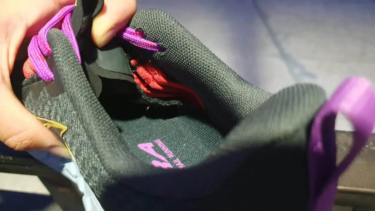 Обхват стопы в средней части происходит за счет красных петель, которые проходят от основания подошвы к шнуровке. За счет них можно добиться плотной фиксации именно в центре, не передавливая в остальных местах. Шнурки также обладают небольшой упругостью — и это как плюс, так и минус, так как иногда приходиться перешнуровывать.