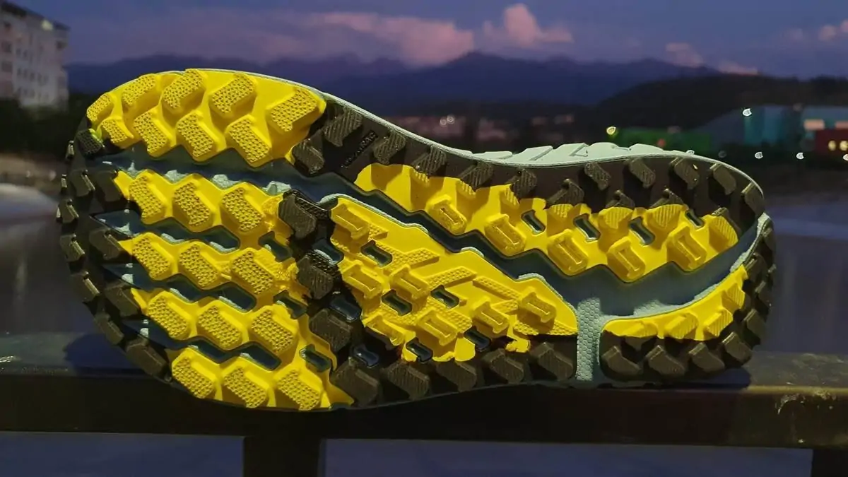 Протектор изготовлен из резины собственного производства Altra Max Trac. Сам по себе состав довольно цепкий, а вот выступы слишком мелкие для чего-то серьезнее тропинок. Их высота едва превышает 2 мм, что меньше, чем у большинства трейловых моделей, даже универсальной направленности.