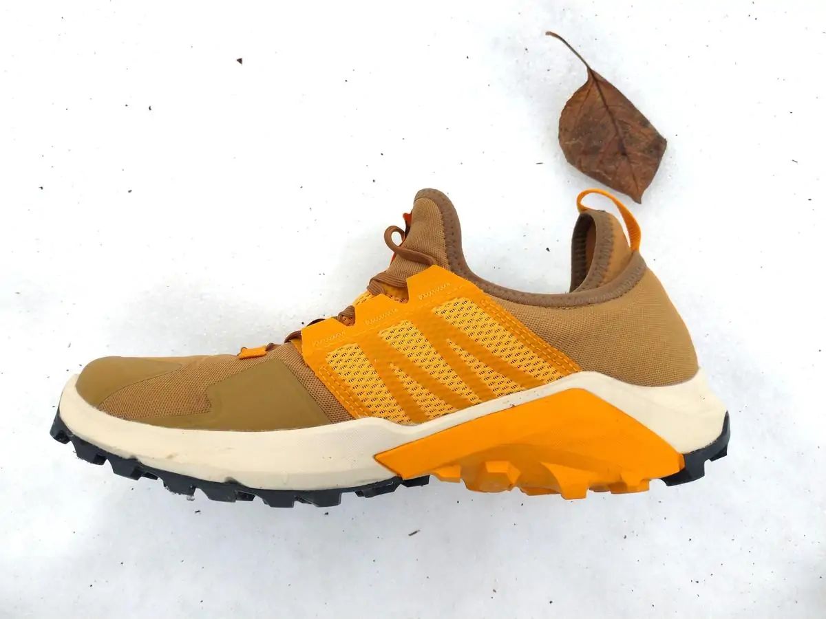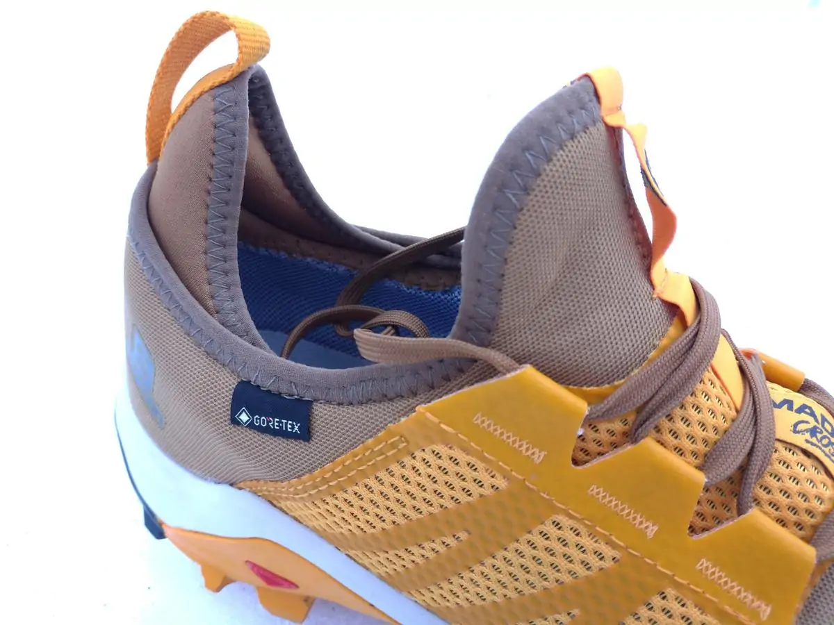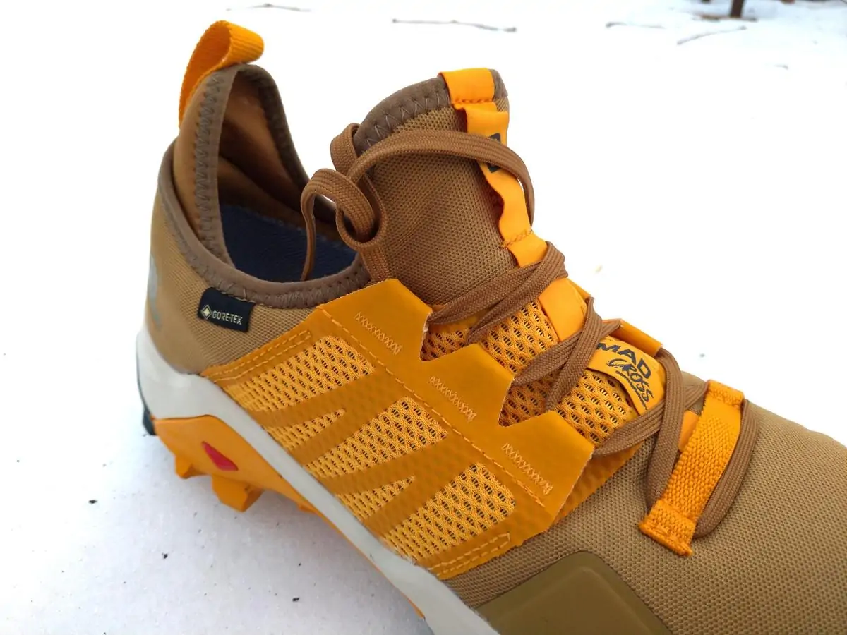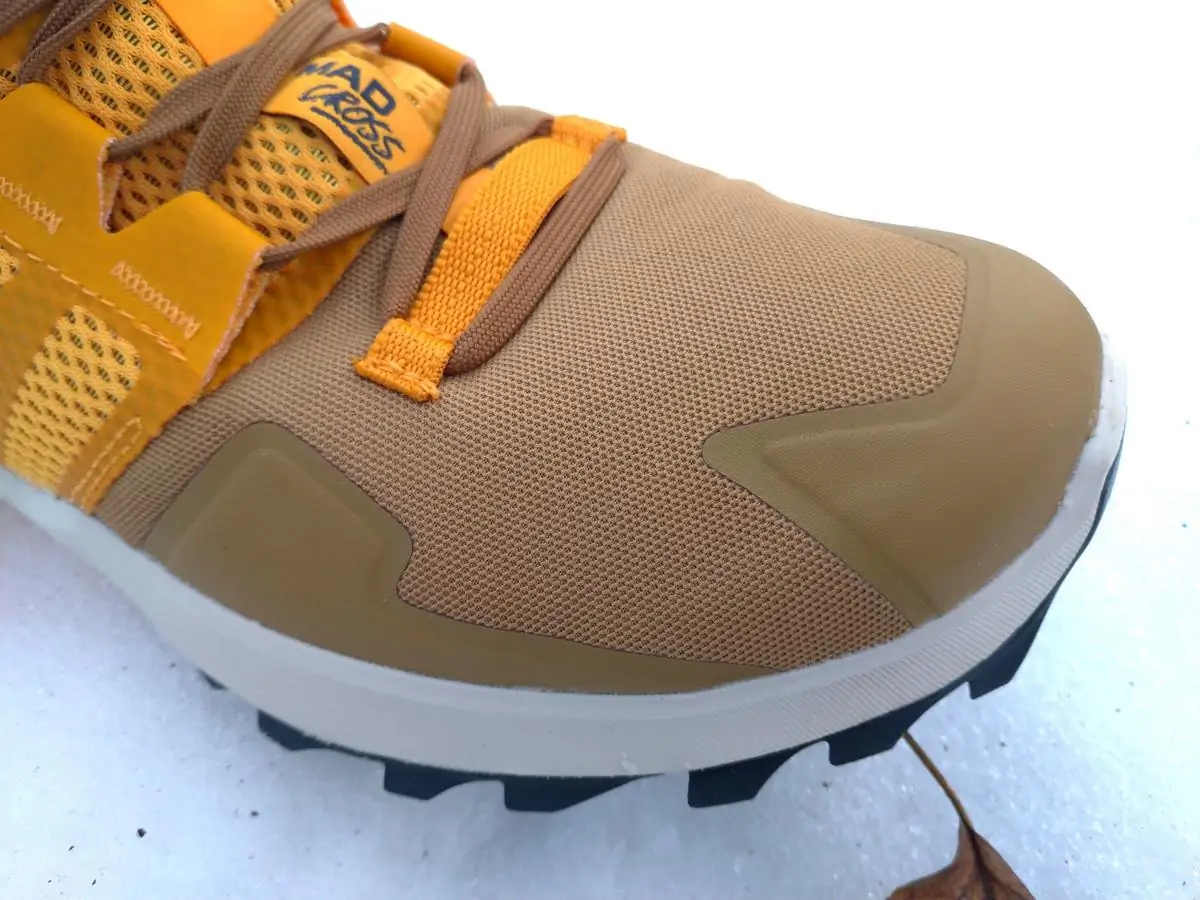 Внешне же Madcross по-началу обескуражил вариантом расцветки, который пришел к нам на тесты. Этот “золотистый винтаж” показался совершенно не спортивным и слегка странным, что конечно же, вкусовщина. Но пробежав пару километров в начале декабря по ближайшему лесопарку, фишку данной расцветки я раскусил сразу и даже посмеялся над иронией дизайнера, ну или я просто вообразил, что она здесь заложена.