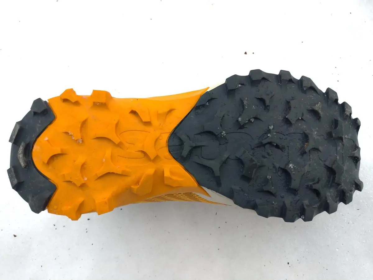 3 из 5 Умеренная амортизация, что важно. Кроссовки такого класса не должны вязнуть в грязи. Здесь выдержан баланс между амортизацией и сохранении энергии в рыхлом грунте. На твердой поверхности, если она окажется под ногами EVA будет работать в умеренном режиме, а значительную долю нагрузки получат шевроны потектора. |