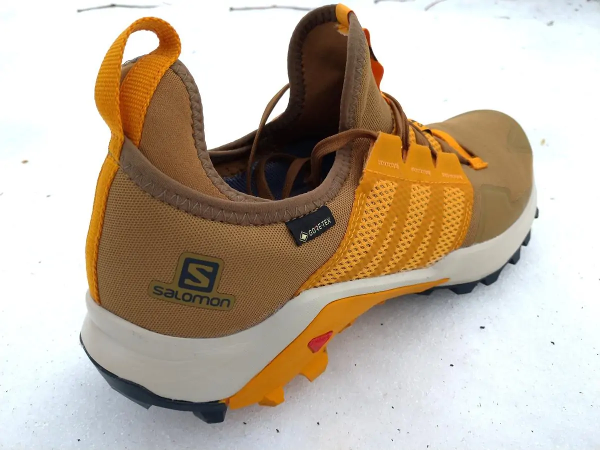 Верх кроссовок “монолитный”, бесшовный и выполнен единым “носком” без язычка. Единственные швы, которые здесь есть, соединяют систему фиксации Sensifit с внешним материалом верха. Важно, что они не прошивают кроссовок насквозь, ведь иначе смысла в мембране бы не было, прострочка здесь поверхностная. Усиливающие вставки в передней части сварные, наложены на линии анатомического сгиба и на носке, и они довольно плотные, не бутафорские. С другой стороны их плотность явно намекает на любительский уровень этих кроссовок. В более верхних моделях Salomon усиление более тонкое и изящное. Борта кроссовок довольно низкие, поэтому мы рекомендуем носить такие кроссовки со снегозащитными гамашами. Тем не менее, на пятке и в зоне язычка есть дополнительный материал, который немного защищает от попадания грязи спереди и сзади, но эта защита условна и имеет скорее дизайнерскую функцию. Также за эти вставки в целом удобно держать обувь при надевании - на пятке нашита петелька для удобства. Такие петельки ставятся на кроссовках также начального уровня. ![]() |