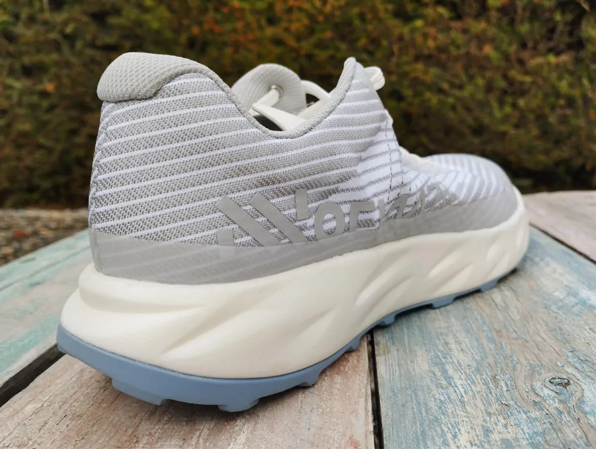 Из предыдущего пункта вытекает основная проблема для многих моделей разных брендов — как сделать комфортные кроссовки без потери производительности. Да, можно стиснув зубы бегать в низкопрофильной обуви без амортизации, но сильно далеко в таких кроссовках убегут лишь единицы атлетов. Пена EExpure сбалансирована по показателю плотности пены, что позволяет бежать настолько быстро, насколько готов бегун, при этом она дает достаточный уровень амортизации на твердых поверхностях и особенно на спусках с горы. Интересно, что выбегая на асфальт или бетон, они кажутся довольно мягкими в пяточной части — это поможет на последних километрах любого забега добежать по городскому асфальту до финиша без слёз.