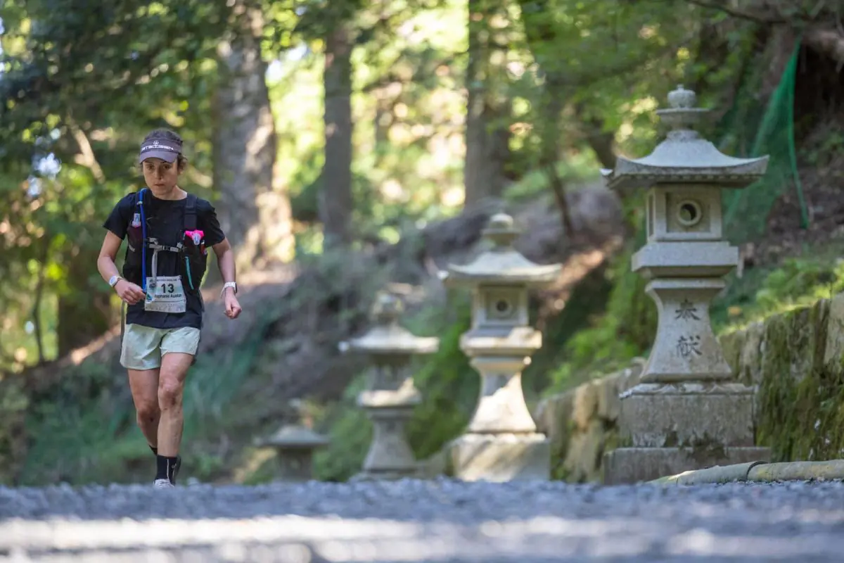 Трасса скоростная, в 2024 году Кортни Даувальтер пробежала ее за 19:21. Старт днем после обеда, лимит 45:30 - можно пройти пешком :) Будут открыточные виды Фудзи. Список обязательного снаряжения внушителен, как на EWR (два фонарика, флиска, лонгслив, шапка, перчатки, тайцы, мембранная куртка и штаны). Проверяют на выдаче номера. Я считаю его избыточным — в это время года уже жарко, можно бежать в шортах и майке. Высоты небольшие, кругом цивилизация. Я нес все на себе, хотя видел участников бегущих с совсем пустыми рюкзаками.