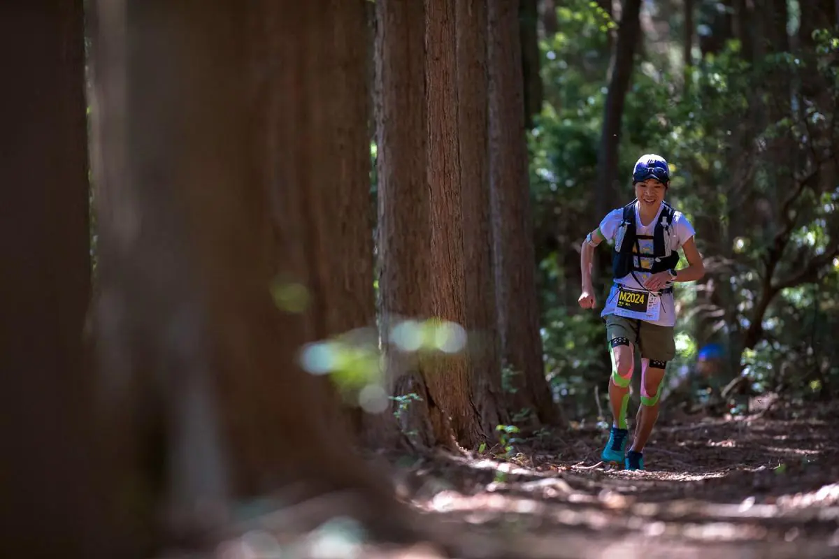 Хорошие беговые тропы, с вершин видно Фудзи. Максимальная высота 2000, там может быть ниже 0. Палочки разрешены и они тут сильно помогут. На ПП кормят хорошо, на последнем был очень вкусный местный виноград.
