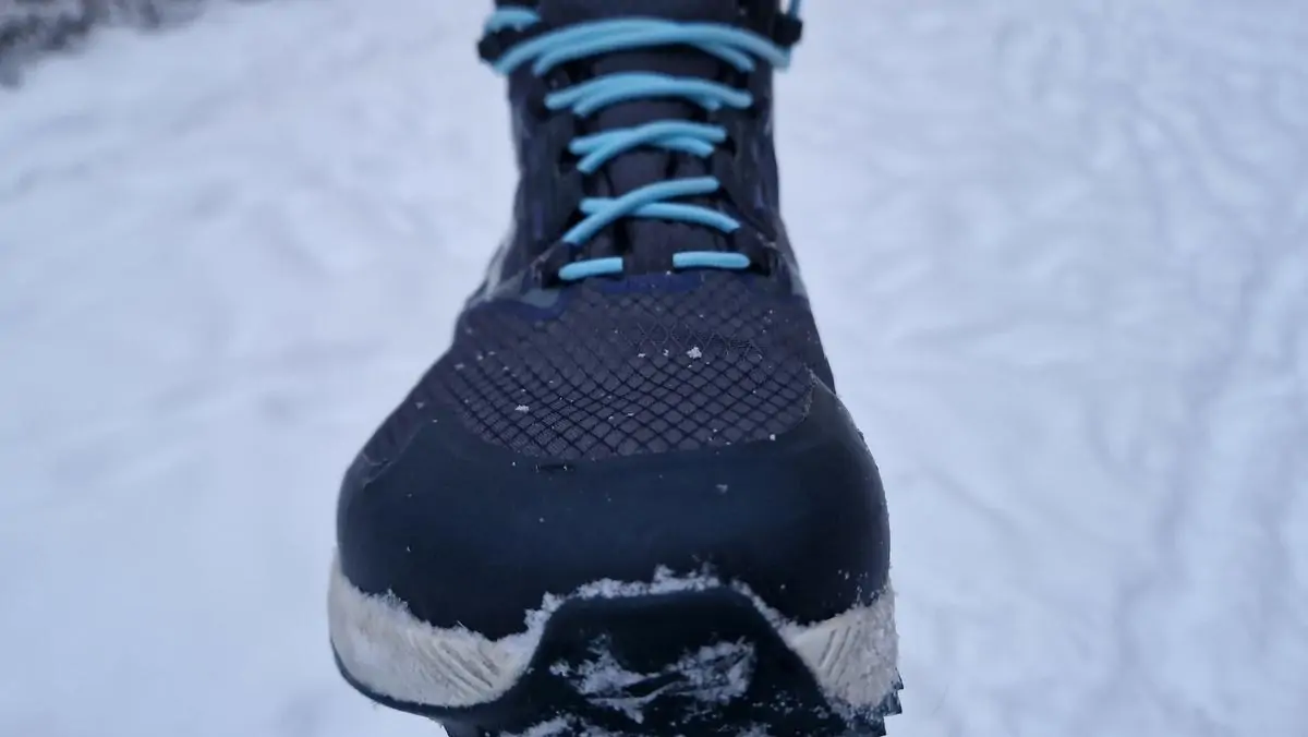 Как уже было сказано и показано, широкий носок и заряженный протектор делают свое дело — это кроссовки, в которых классно бежать по снегу. Мне понравилось, что при беге по неровностям, когда кроссовок немного проскальзывает вперед или в сторону, пальцы остаются нетронутыми — ведь у них внутри достаточно места! Думаю, что это очень важный момент для зимней обуви. Оценивать какие-то беговые свойства пены довольно сложно, так как снег сам по себе довольно мягкая субстанция. Хотя, конечно, межподошва из пены ALTRA EGO добавляет амортизации и отзывчивости.