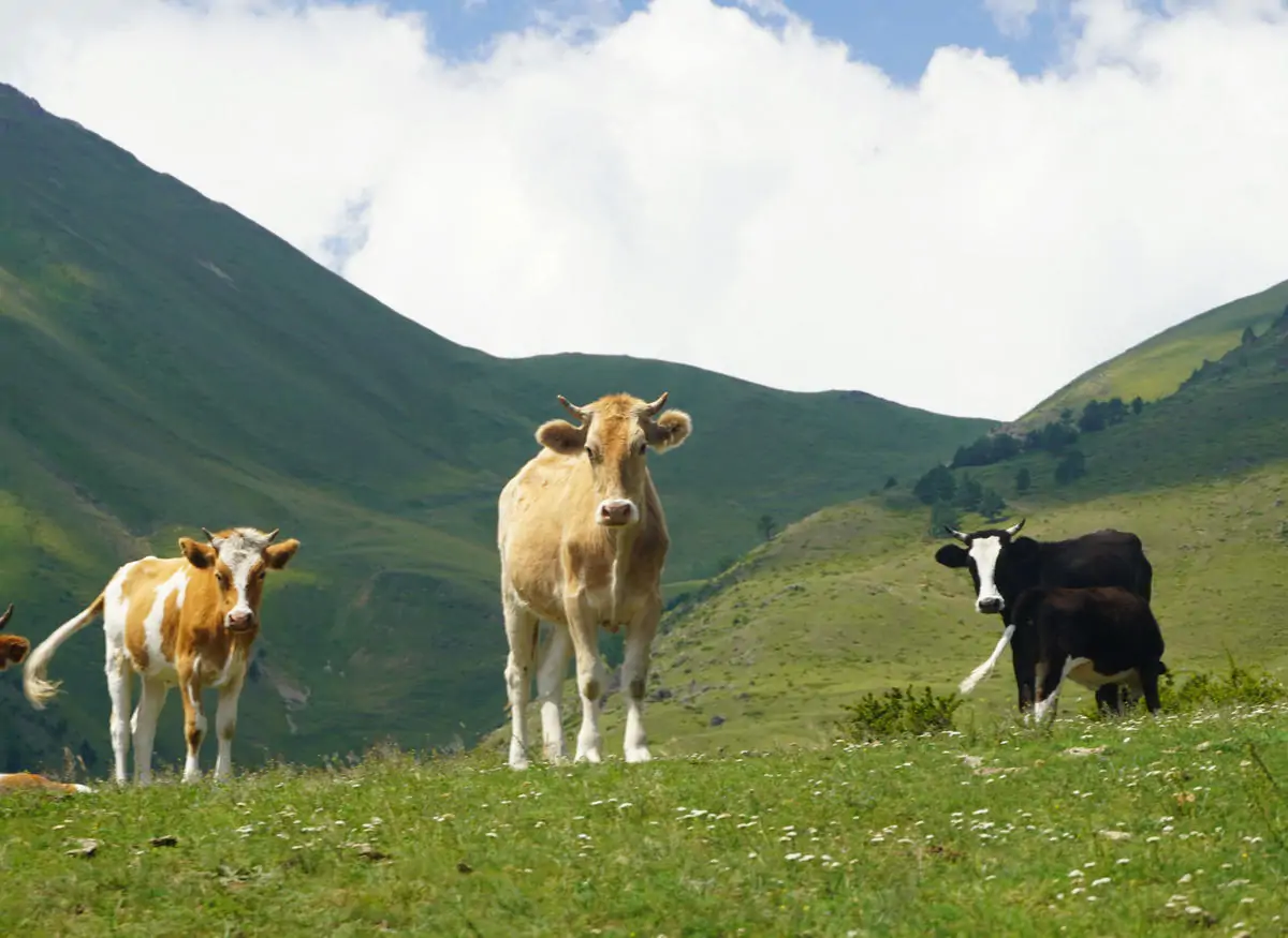 На пути из Учкулана Коровы Карачаево-Черкессии на горных пастбищах выглядят весьма довольными жизнью, чистыми и ухоженными.
