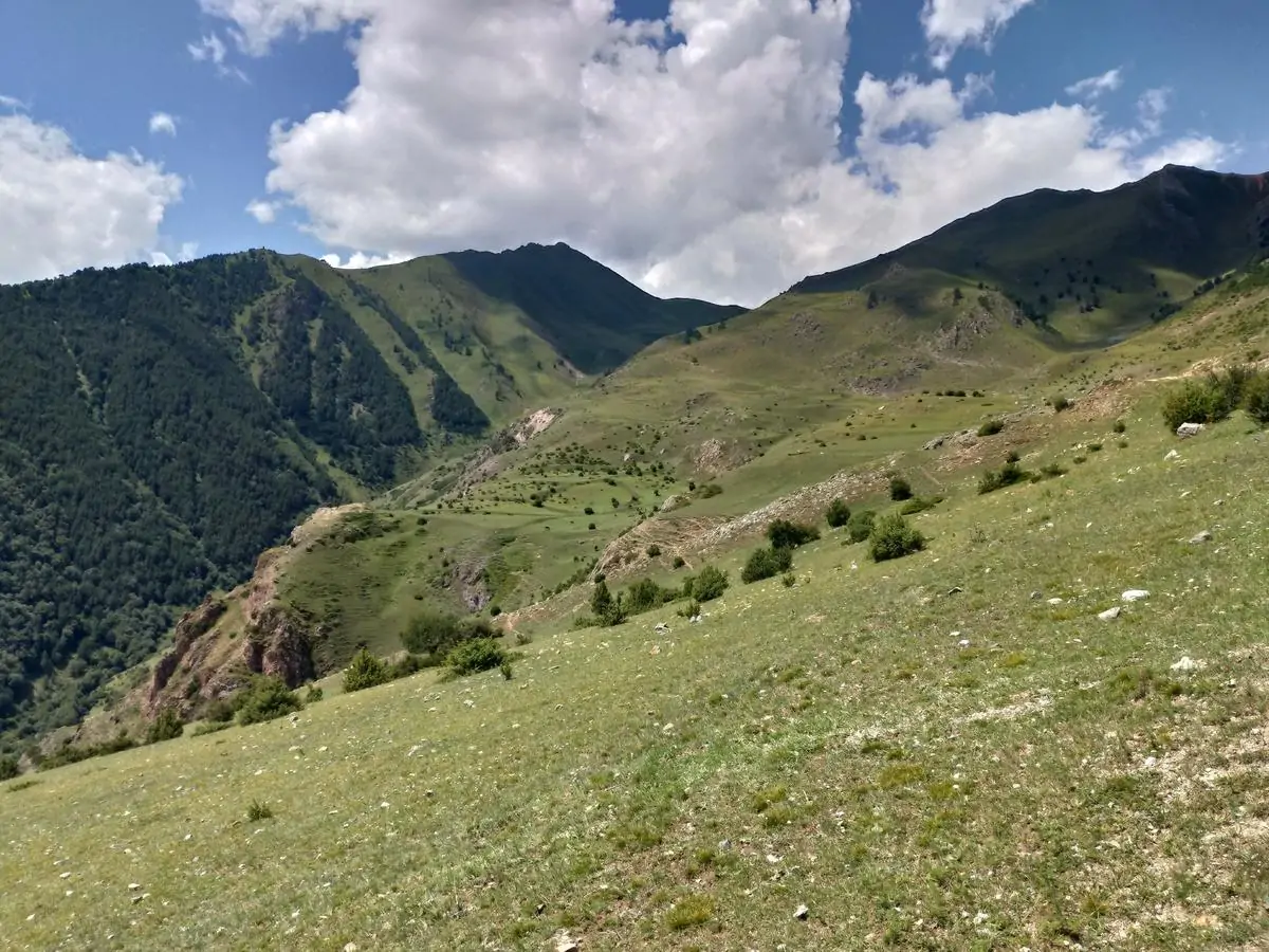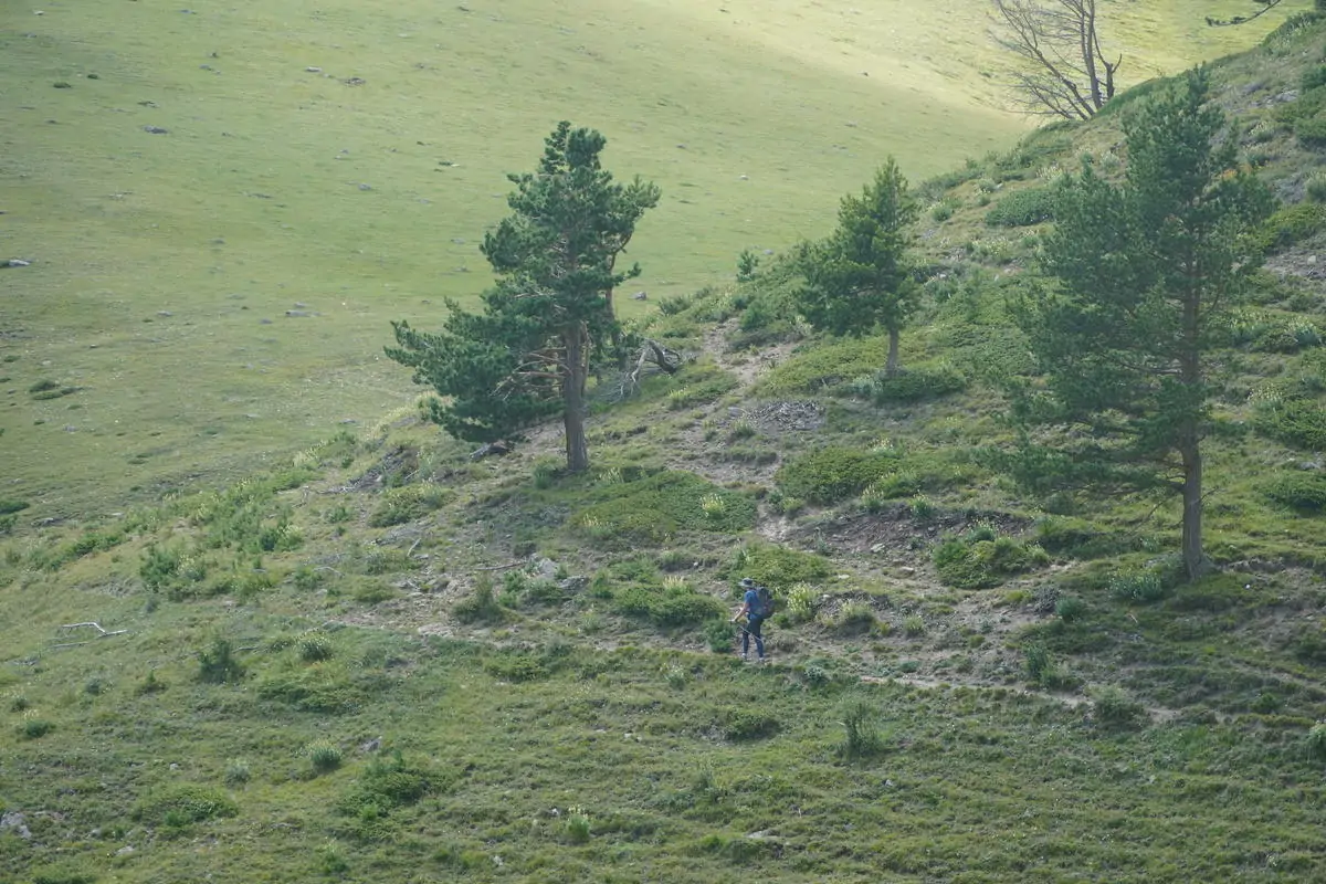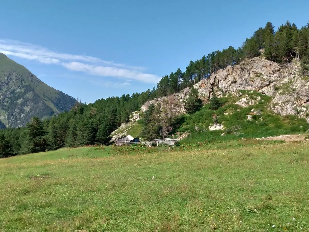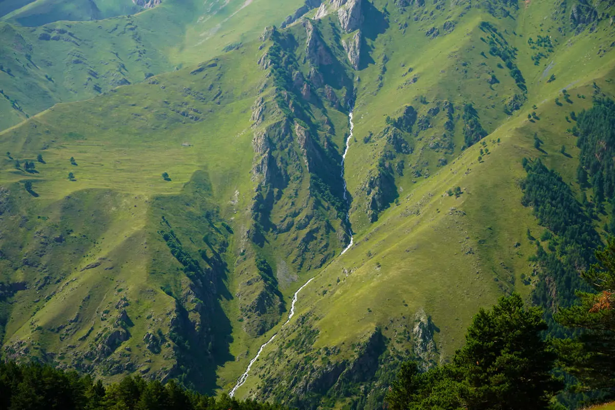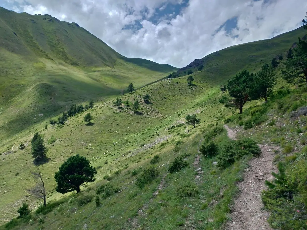 С перевала Ыбчик начинается довольно крутой спуск вниз к альпийским лугам и зоне леса. Здесь начинаются первые ручьи. При входе в зону леса на опушке находится кошара, здесь тропа теряется и есть два варианта движения. Первый - идти по треку, не приближаясь к кошаре, - в этом случае тропа будет периодически отсутствовать, но и непролазные дебри на пути не встретятся.
