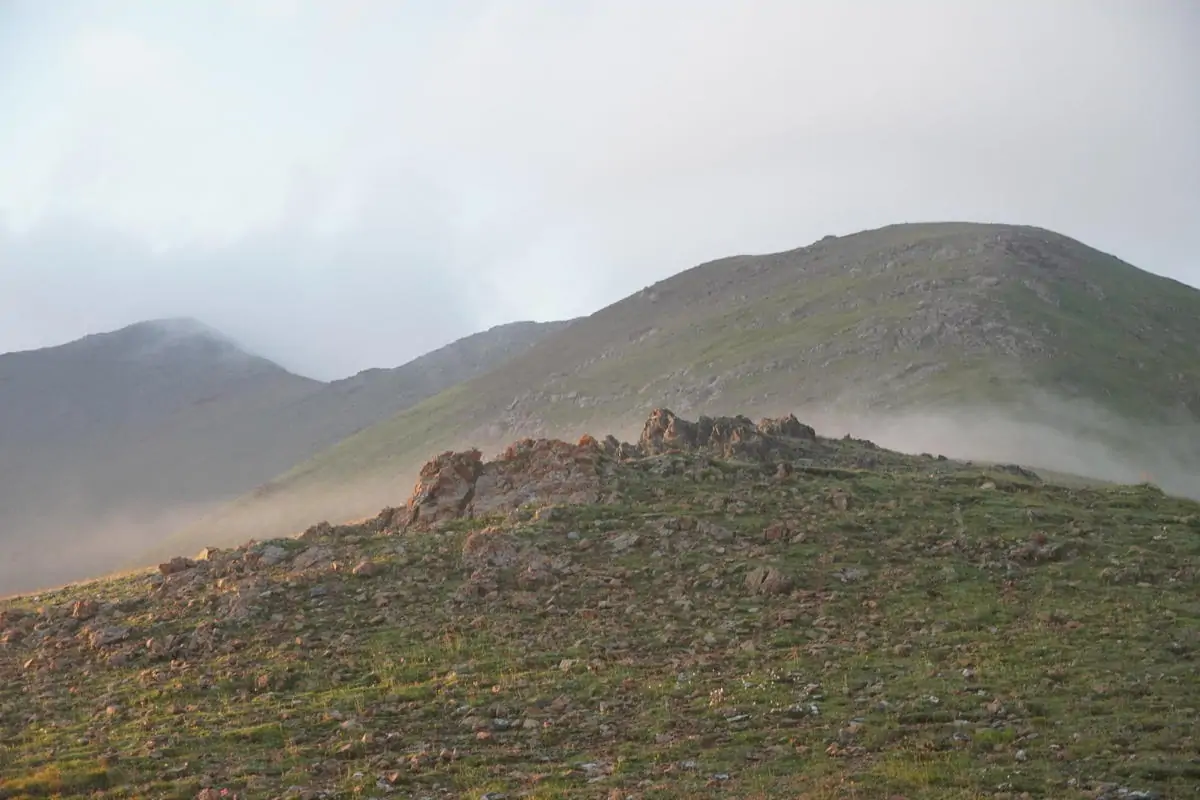 Перед выходом на перевал склон достаточно крутой, но без технических элементов - это стабильный грунт и мелкая трава. Здесь особенно пригодятся навыки работы с трекинговыми палками. Нужно просто собраться с силами и взойти на высоту 3000 метров. С перевала Эпчик открывается шикарный вид на Тебердинский заповедник и перспектива многочисленных хребтов.