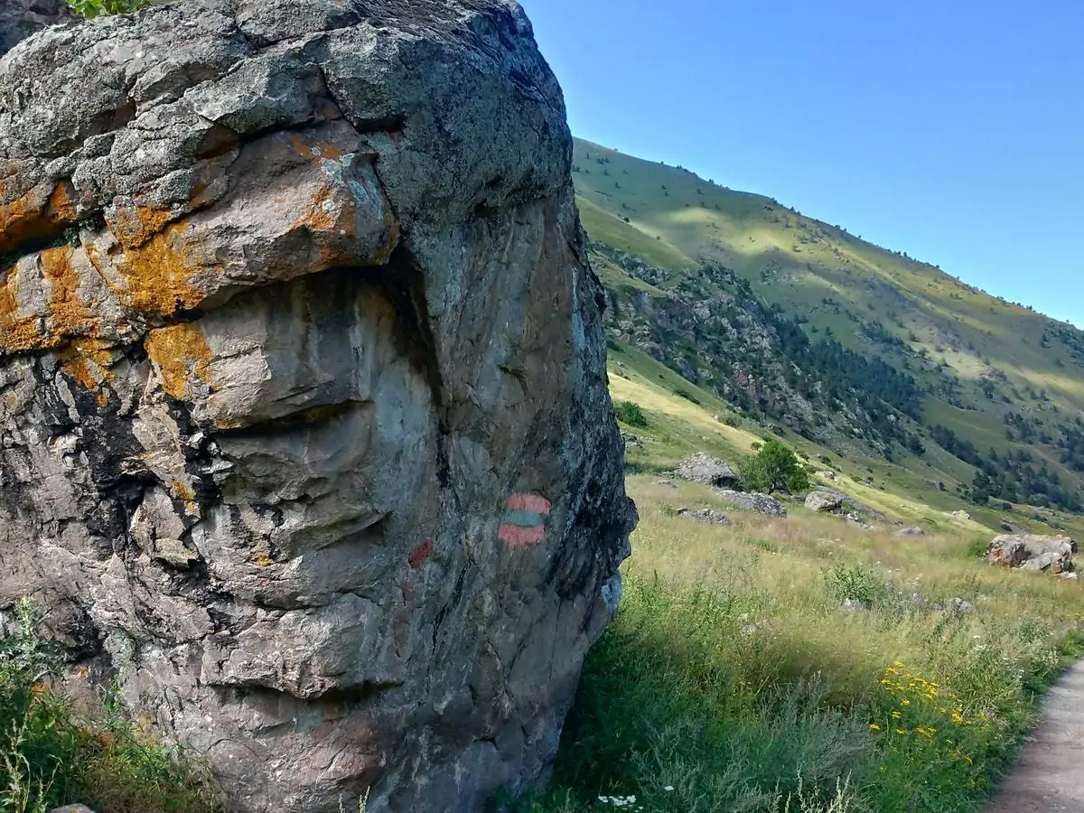 Старая маркировка некогда популярного маршрута. Это место для ночевки возле моста через реку Даут
