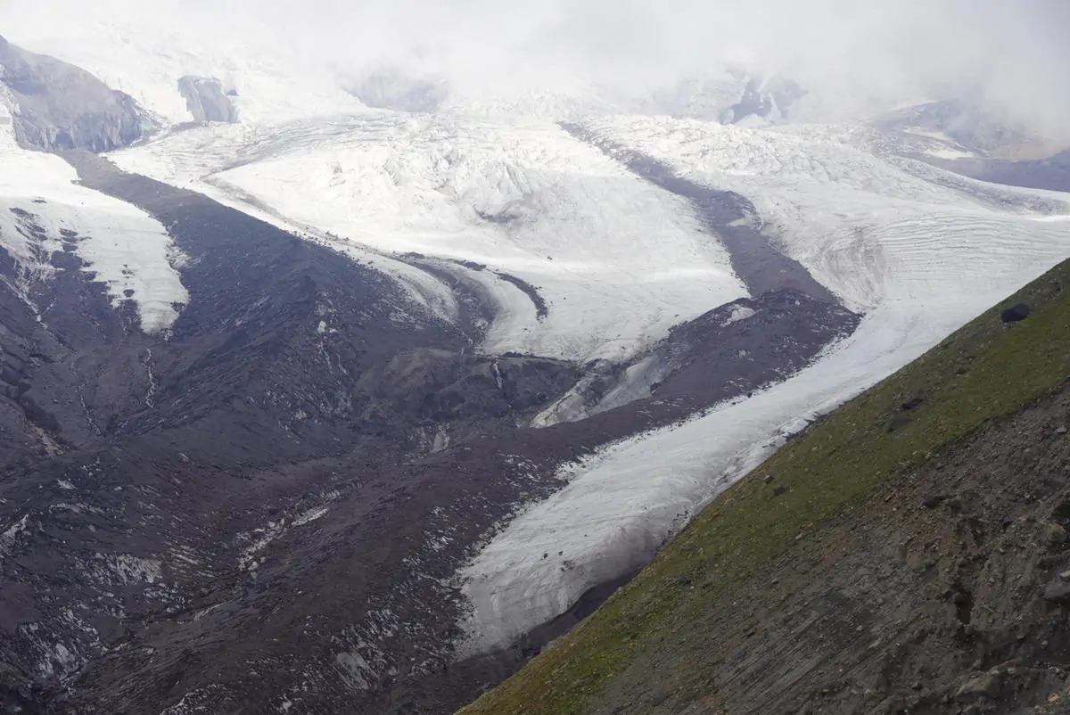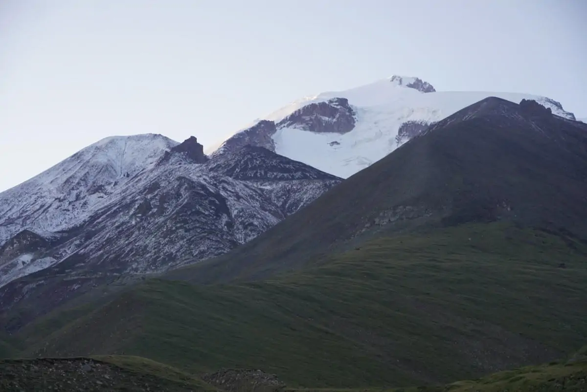 Вид ледников Эльбруса по пути на перевал Балк-Баши