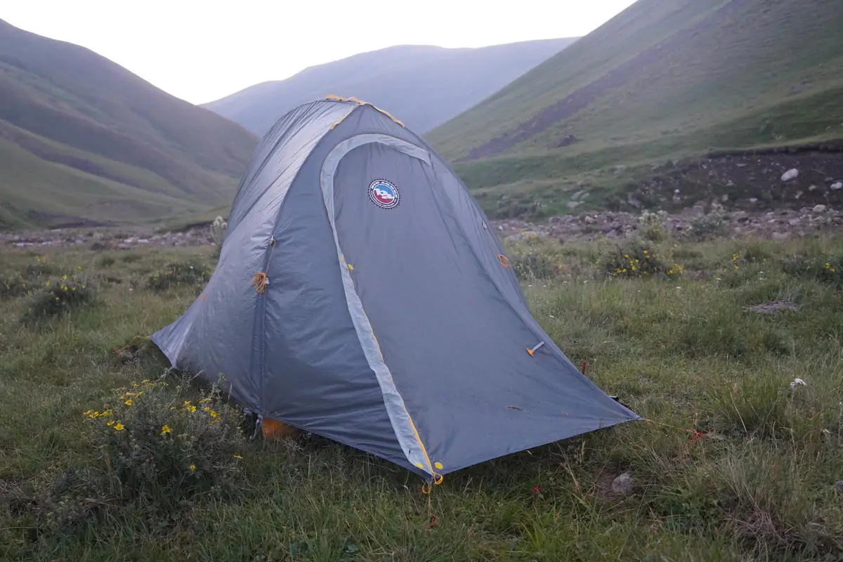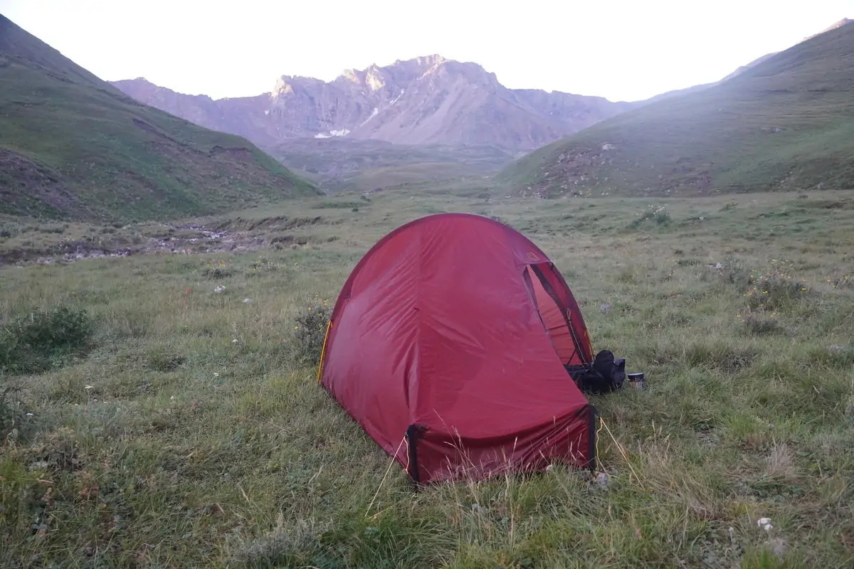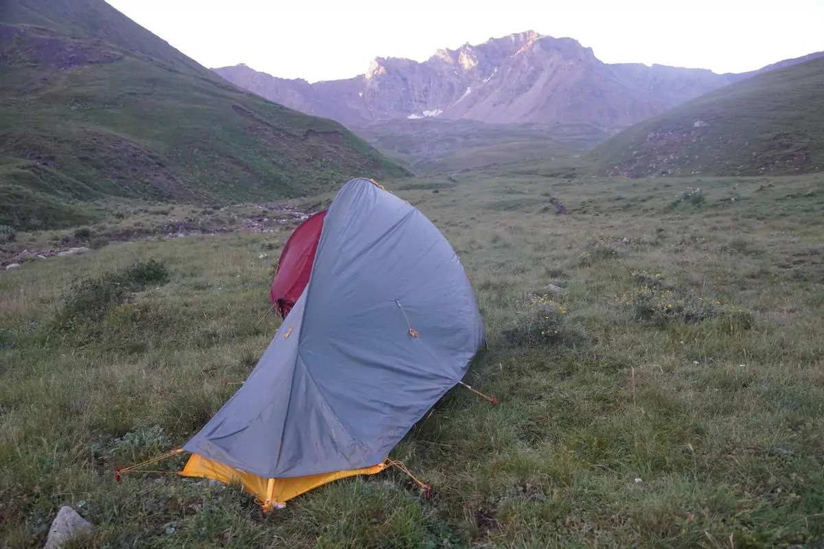 Ночёвка под перевалом Каракайский Северный у реки Исламчат. На фото легкоходные палатки Big Agnes и Nordisk Telemark