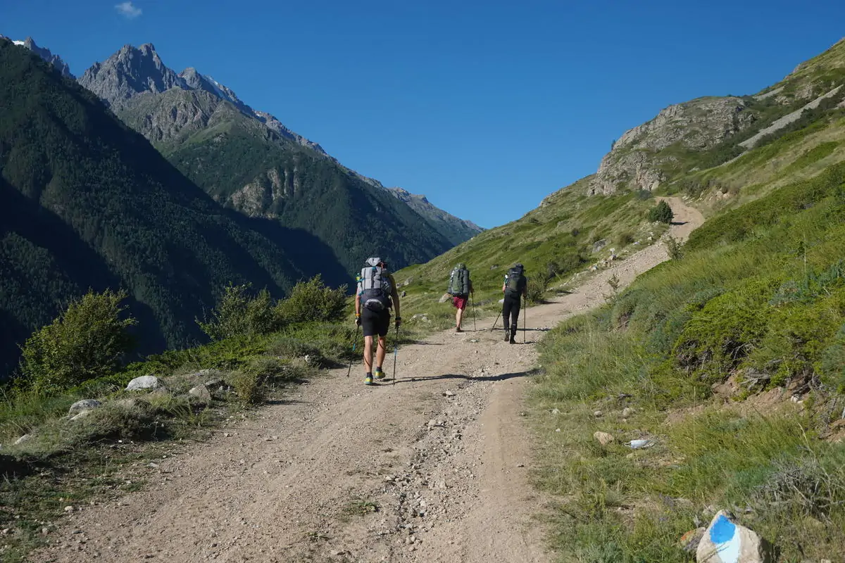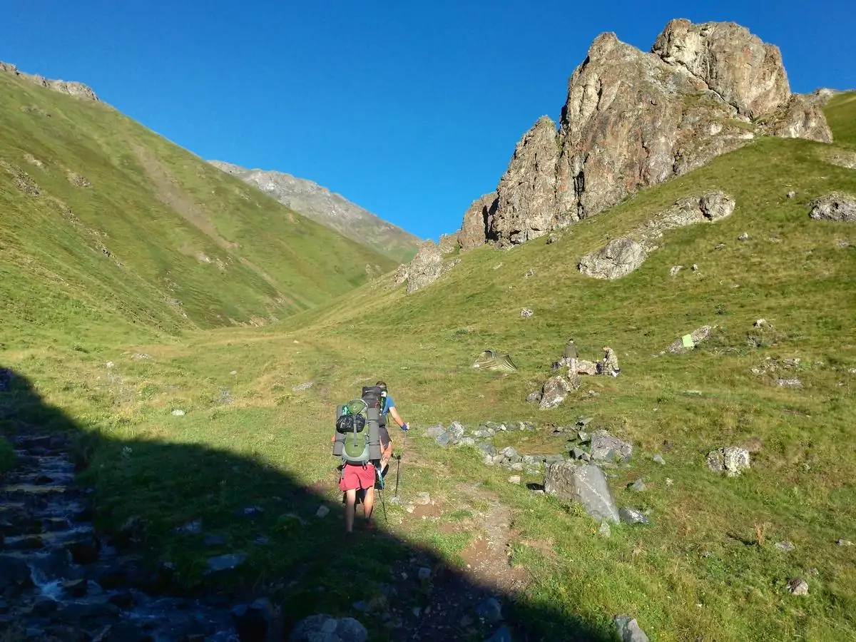 На маршруте есть три перевала, два из которых выше трёх тысяч метров. Большая часть трека находится на открытом пространстве без леса в долинах рек. Так что и виды вас ждут потрясающие, и воды на пути будет в достатке, что значит, вам не придется нагружать рюкзаки бутылками. А вот чего не будет, так это следов цивилизации, как и связи с ней.