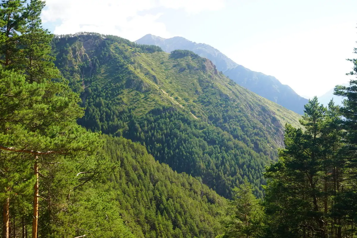 После моста через реку Баксан начинается плавный подъём по классическому пути к озеру Сылтран-Кёль. Из села грунтовая дорога, делая несколько поворотов, уходит в сосновый лес. В начале леса есть поляны, на которых можно остановиться на ночёвку (3,7км от старта по gps-треку), если вы прибыли во второй половине дня и хотите отдохнуть после дороги в палатке на природе. В таком случае надо заранее позаботиться о воде, так как возле полян надёжных источников нет - только глубоко в ущелье течет река Сылтрансу, но спуск к ней крутой и без тропы.