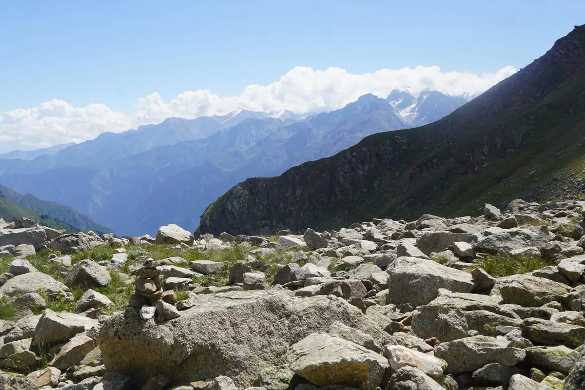 От места стоянки хорошо читаемая тропа идёт крутыми зигзагами вверх на перевал Каракайский Северный (2889). С него в хорошую погоду можно увидеть кусочек Эльбруса.