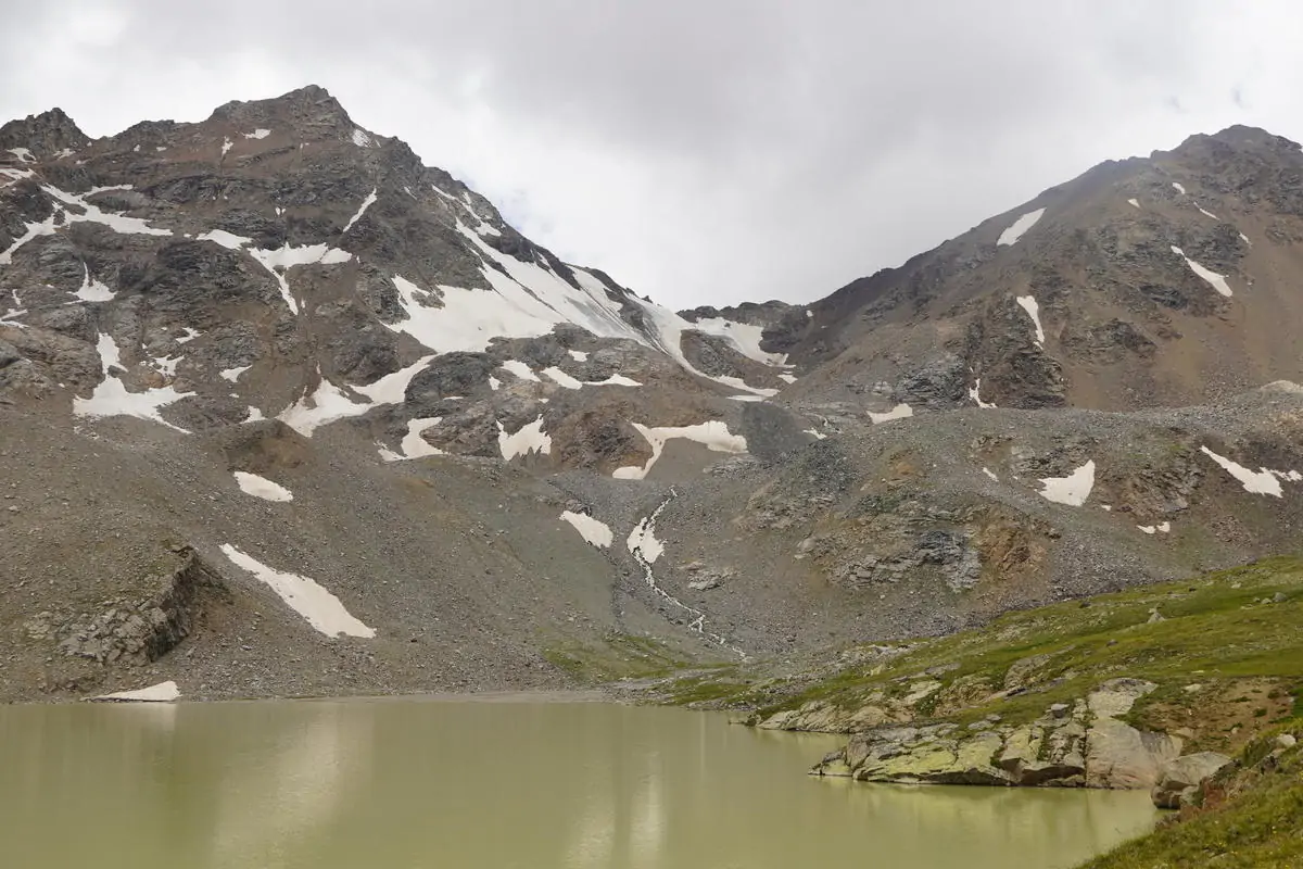 Ближе к озеру тропа проходит через несколько технических участков, при движении по которым нужно быть внимательными. Это курумник (каменная осыпь) с подвижными камнями и небольшой снежник, который не только порадует холодом в жаркий день, но и может предательски провалиться под ногами, поэтому лучше его обойти и освежиться в водах озера.